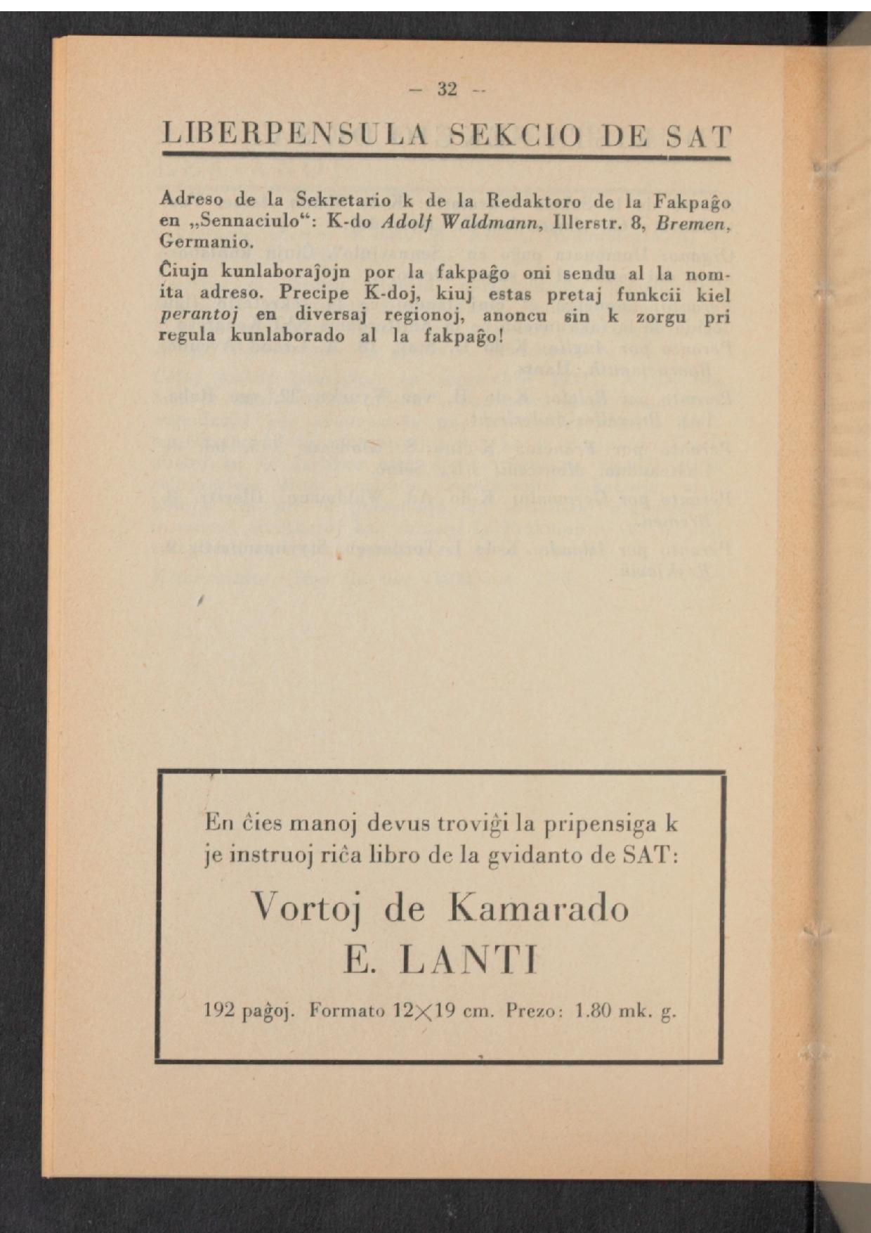 El tio oni scias, ke laŭ SAT-Jarlibro 1932 Adolf Waldmann el Bremen estis sekretario kaj redaktoro de Sennaciulo.