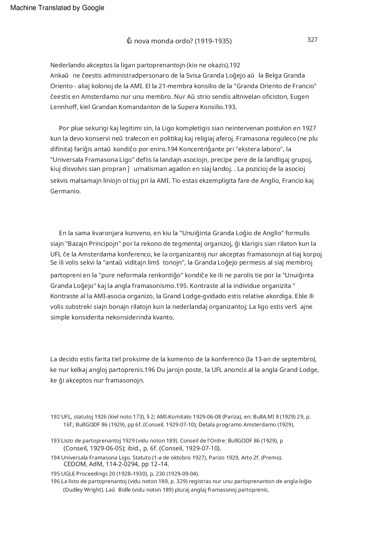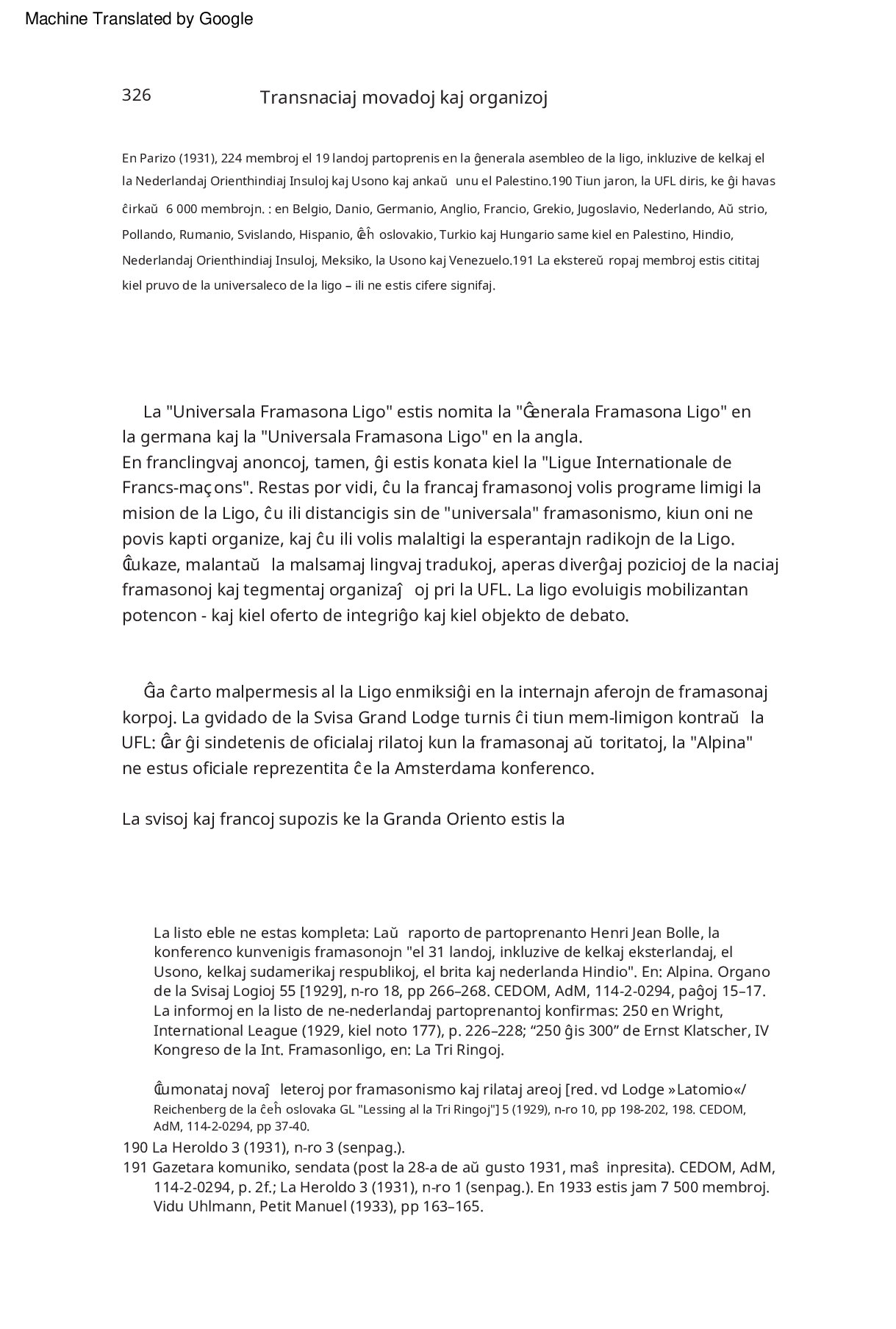Internacia Revuo de sekretaj societoj : La Esperanto Framasona Lingvo ĉirkaŭ 1930 franclingve