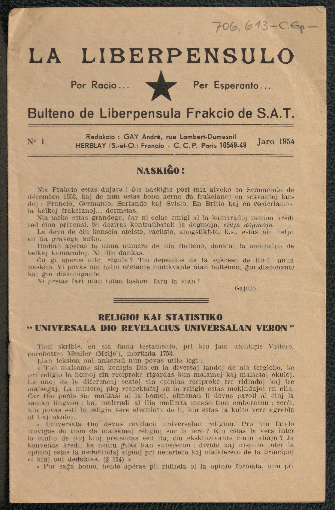 La Liberpensulo de Andreo Gay de 1954 ĝis 1957