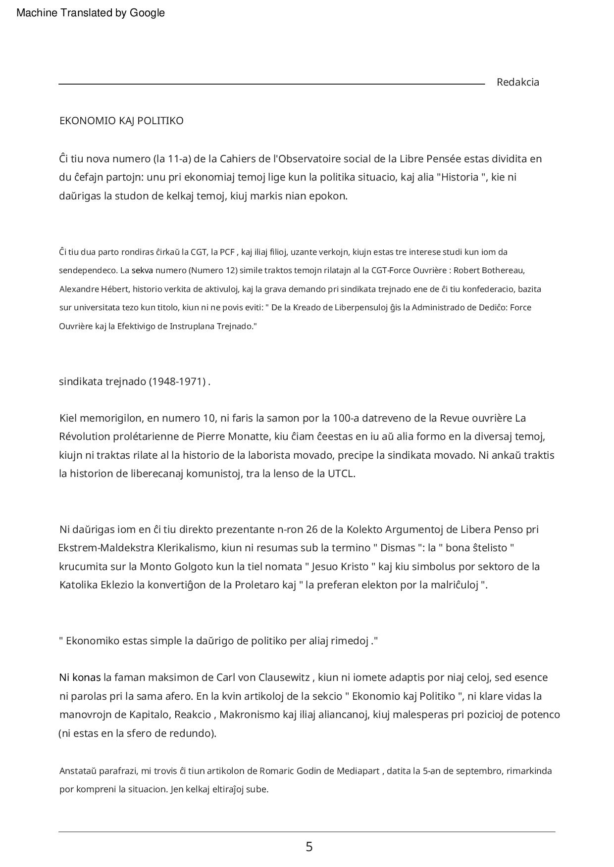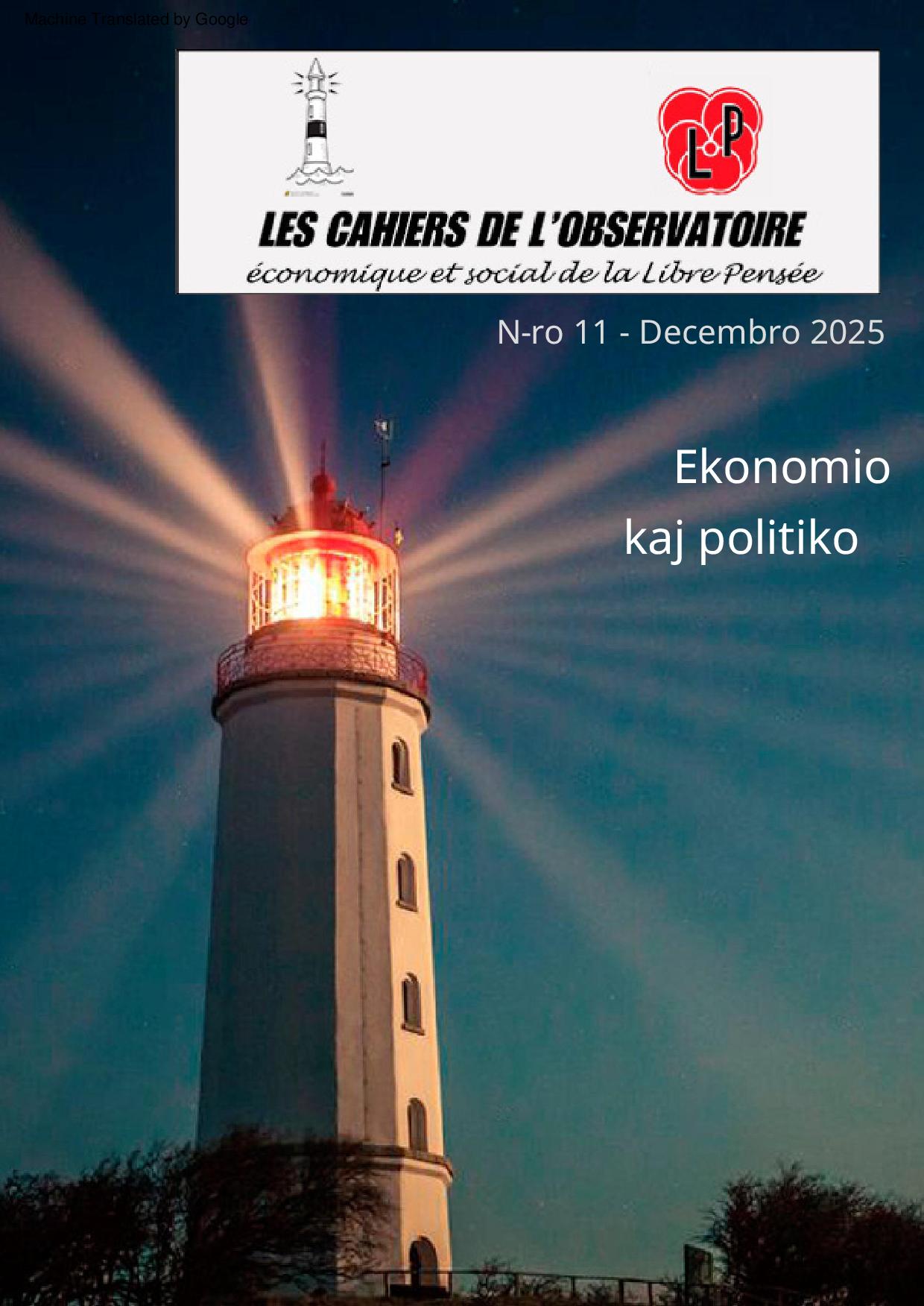 Ekonomio kaj Politiko, KAJERO N° 11 de la Socia Observatorio de Libera Penso