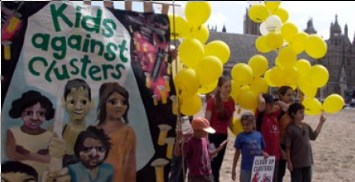 Ni, maltrankvilaj civitanoj, petas de vi, ke vi uzu vian povon por malpermesi la uzadon de pafaĵoĵetoj el bomboj. Pli ol 100 registaroj akceptis malpermesi tiujn armilojn, kiuj sendistinge mortigas. La Konvencio pri la armiloj, kiu estos traktota en la baldaŭaj tagoj kongruu kun tiu malpermeso, garantiante la malpermeson de pafaĵoĵetoj el bomboj kaj la protektadon de senkulpaj infanoj.