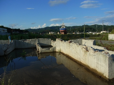 Antaŭ la stacidomo Ŝiŝiori-Karakuŭa sidas granda fiŝŝipo nomata « La 18a Kjootoku-maru ». Antaŭ 4 monatoj la sorto de tiu ŝipo draste sanĝiĝis. La ubro enketis al la loĝantoj pri la estonteco de la ŝipo, kaj la rezulto estas, ke 70% de la loĝantoj aprobis la malkonstruon de la ŝipo. Surbaze de tiu enketo la urbestro konsentis malkonstruadon de la ŝipo, eble kontraŭ sia volo. Mi tre bedaŭras tiun decidon. Mi komprenas, ke multaj loĝantoj ne volas plu vidi la ŝipon, kiu naĝante detruis domojn en tiu distrikto. Sed kiel atestanto de la cunamo, ĝi havos gravan rolon por la estonteco. Same kiel la Muzeo de la 5a Feliĉa Drako en Tokio, viktimo de la eksperimento de hidrogenbombo fare de Usono, ĝi povus rakonti la grandan suferon kaŭzitan de la cunamo al la sekvantaj generacioj. Nun oni jam ne povas imagi, kiel granda estis la cunama damaĝo, ĉar jam preskaŭ nenie restas spuroj de la cunamo.