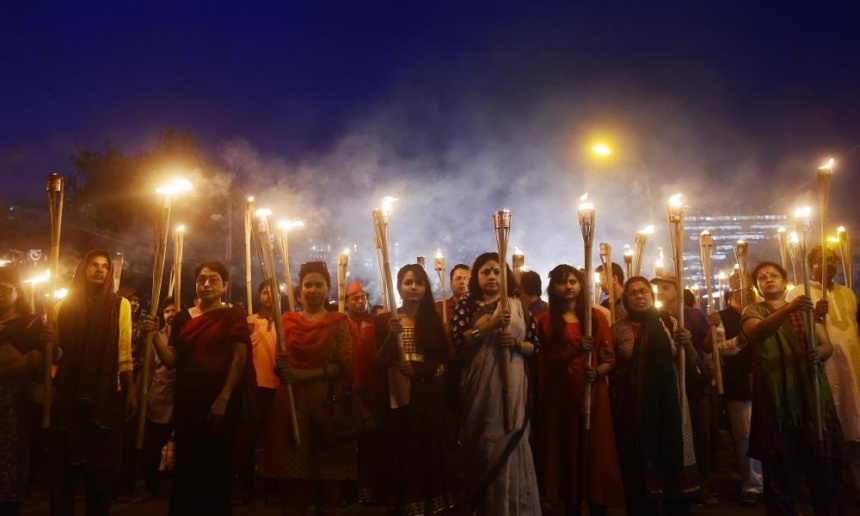 Foto : Laikaj bangladeŝaj aktivuloj partoprenis proteston kun lumtorĉoj kontraŭ la murdo de Avijit Roy, fondinto de la blogo Murto-Mona (Libera pensado)