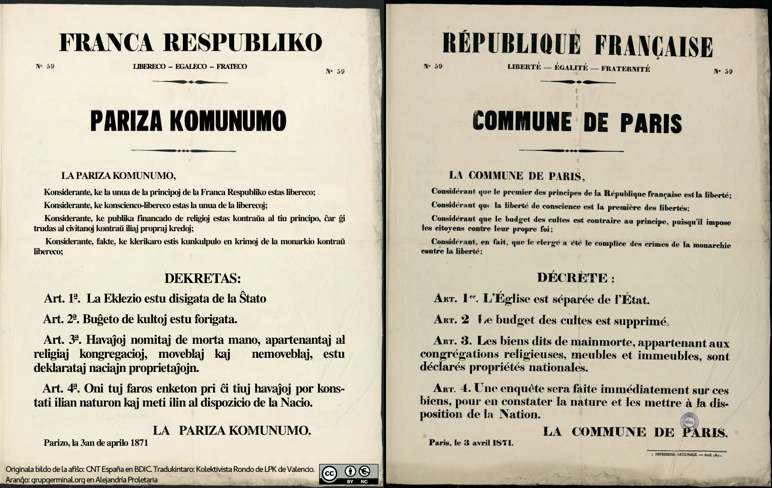 Afiŝaro de la Pariza kaj Liona Komunumoj