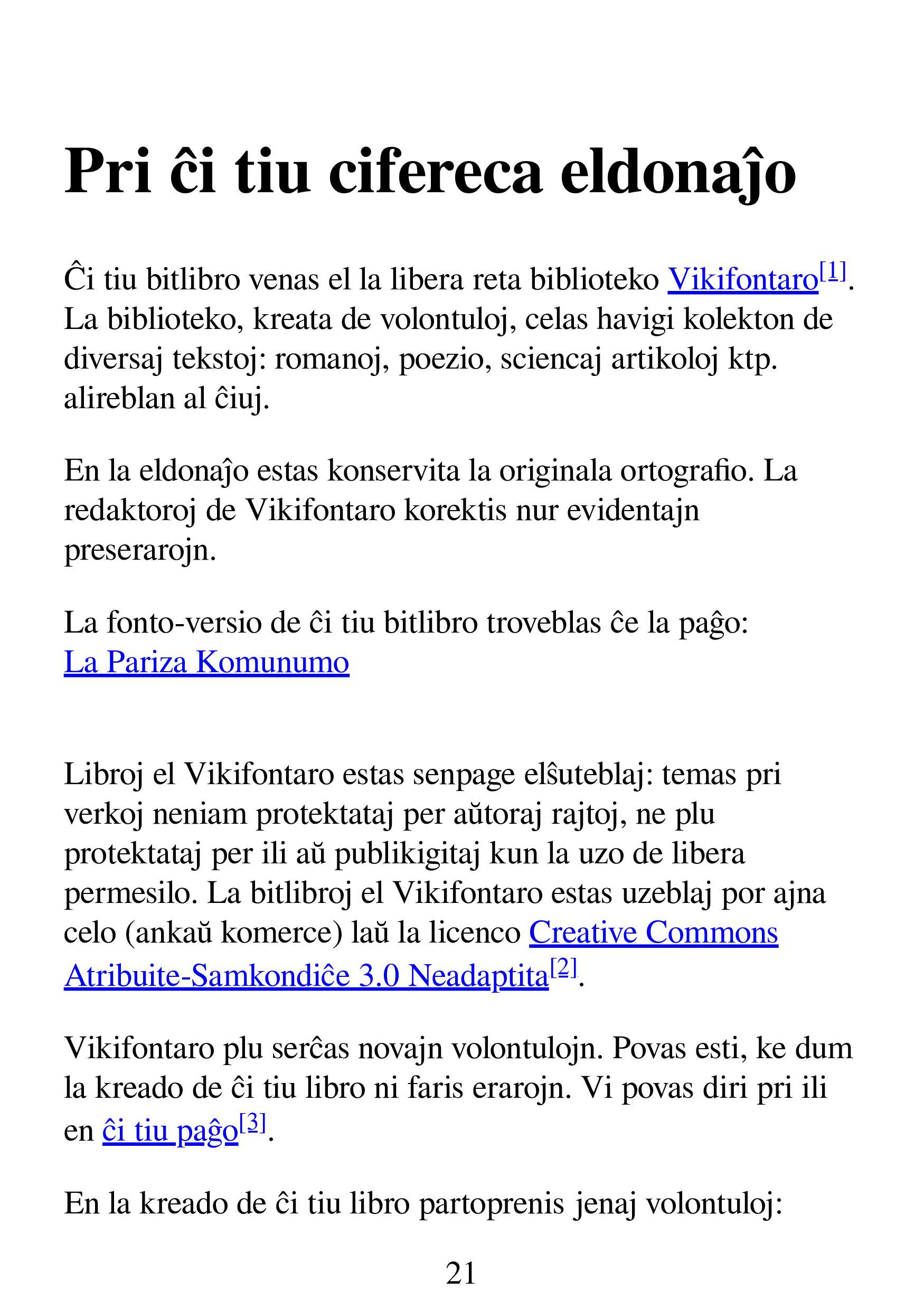 Pri la komunumo kaj fontoj elŝuteblaj franclingve