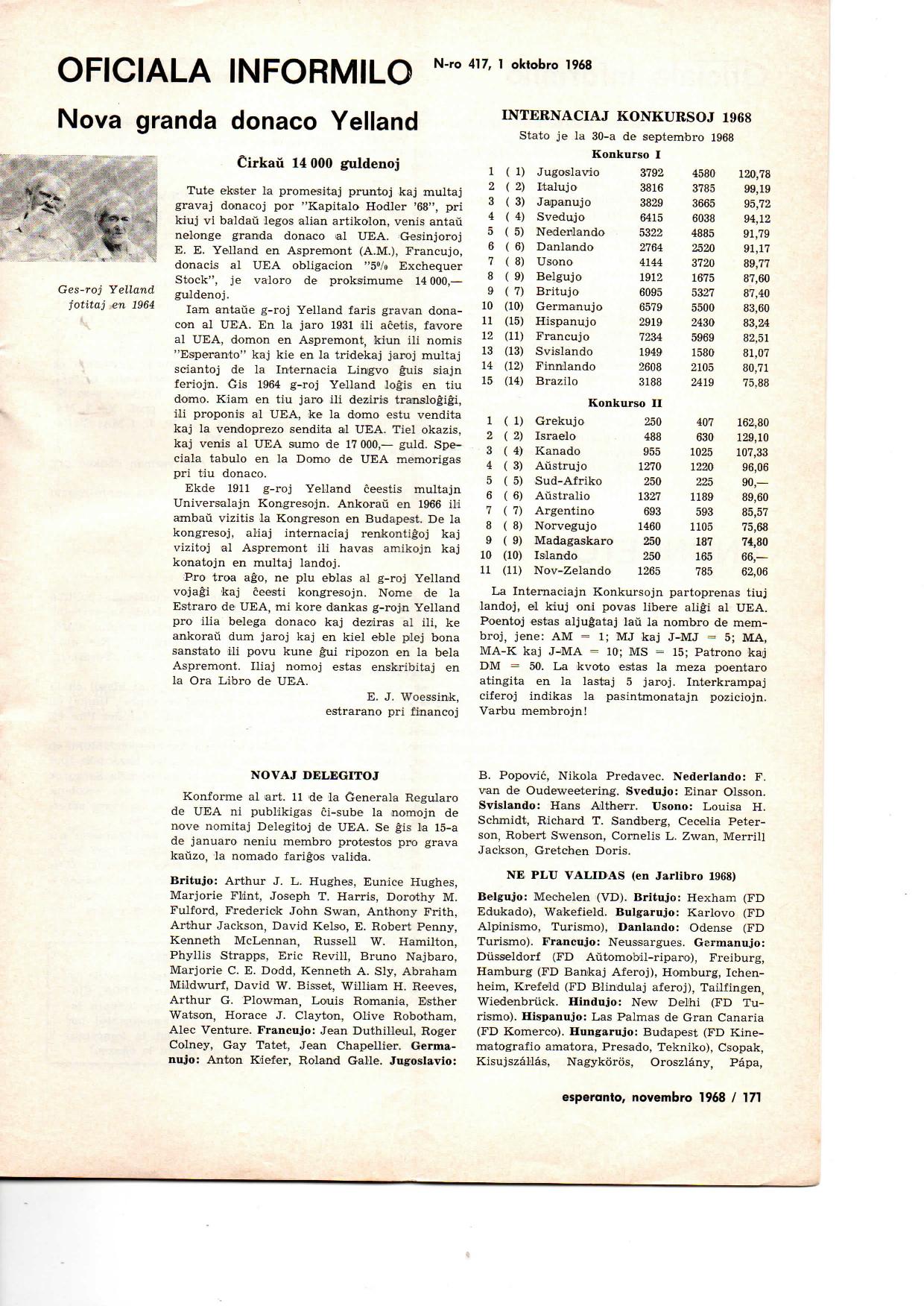 La paro Yelland ne havinta heredantojn kaj estinta fervore esperantista deziris ke