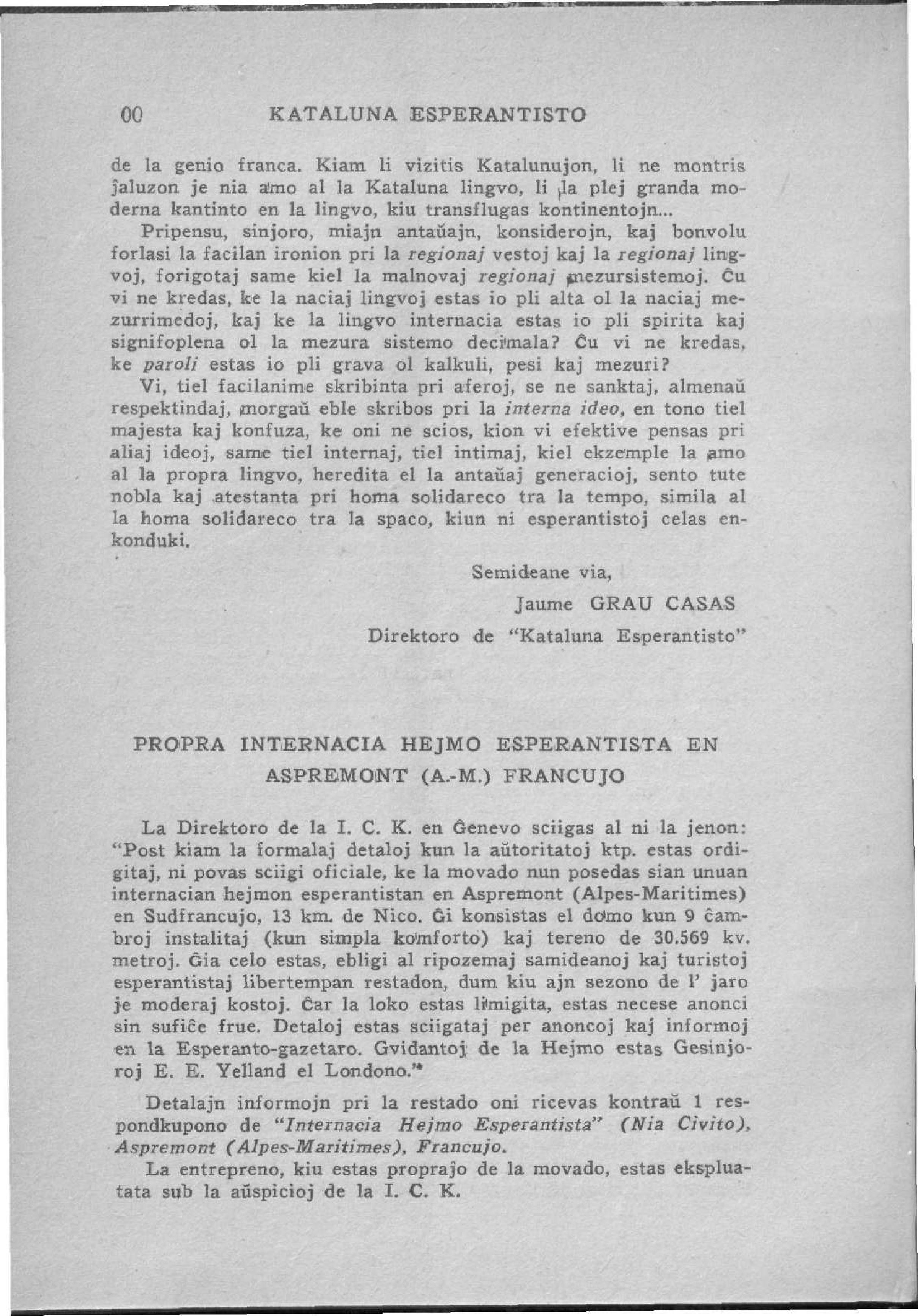 Ne sciante kion fari per ĉi tiu bieno UEA petis helpon de "Groupe espérantiste de Nice" (Esperantista grupo de Nico).