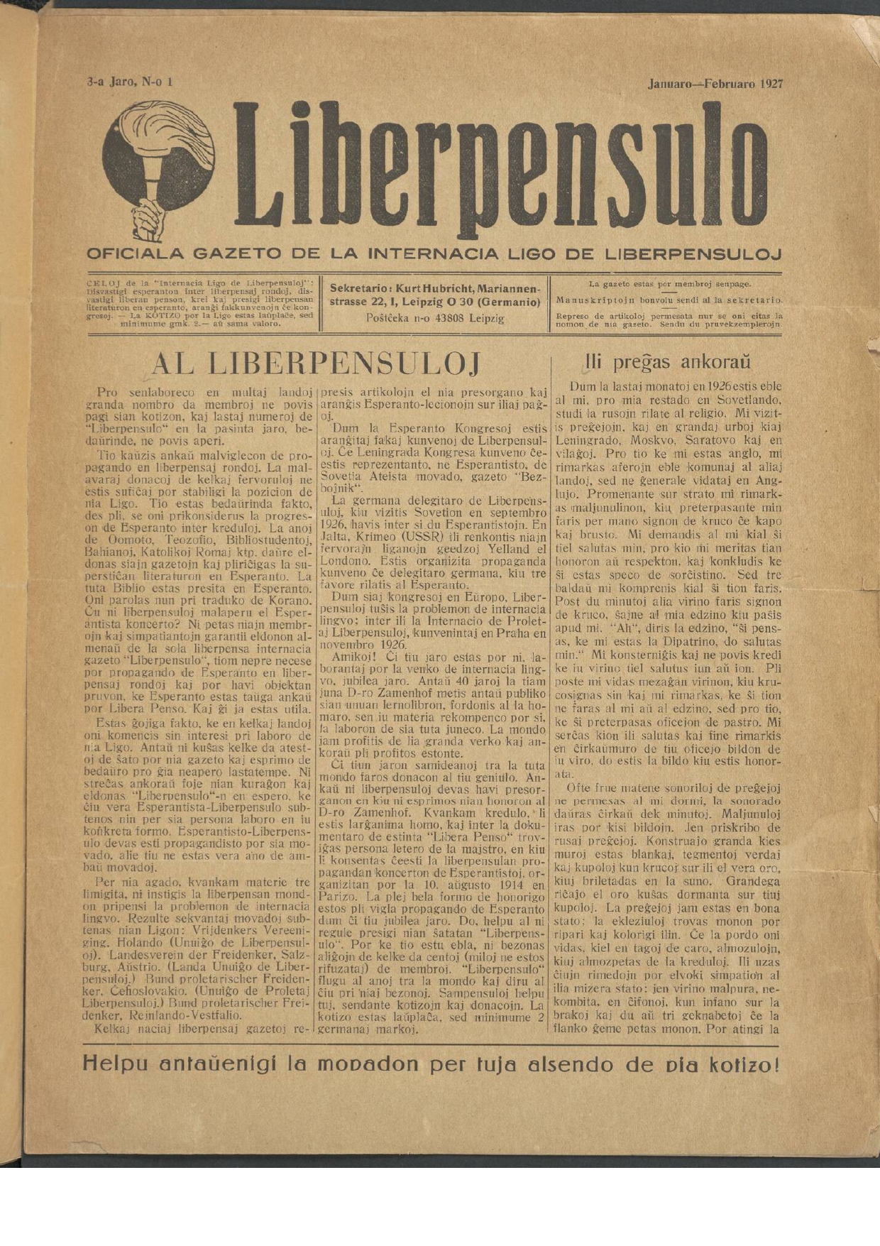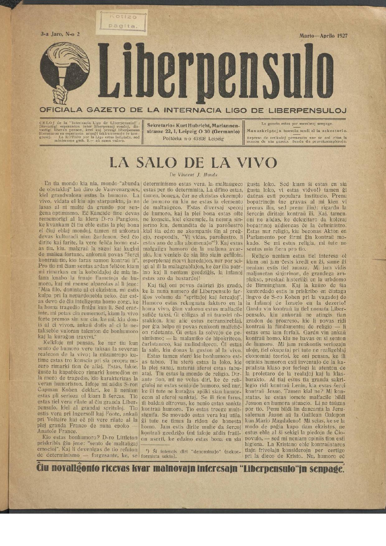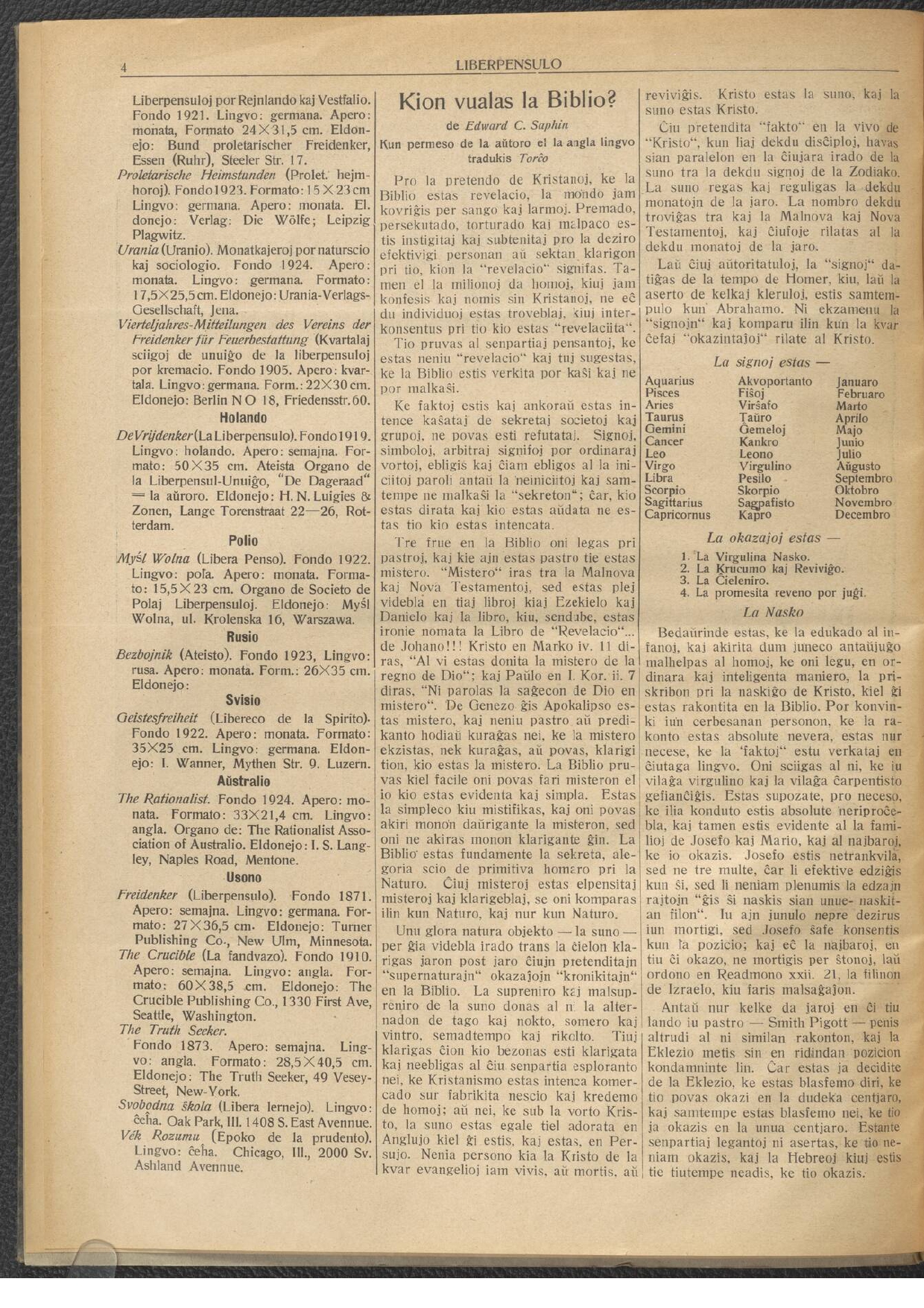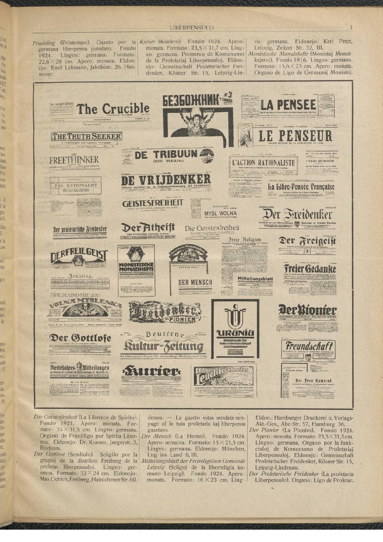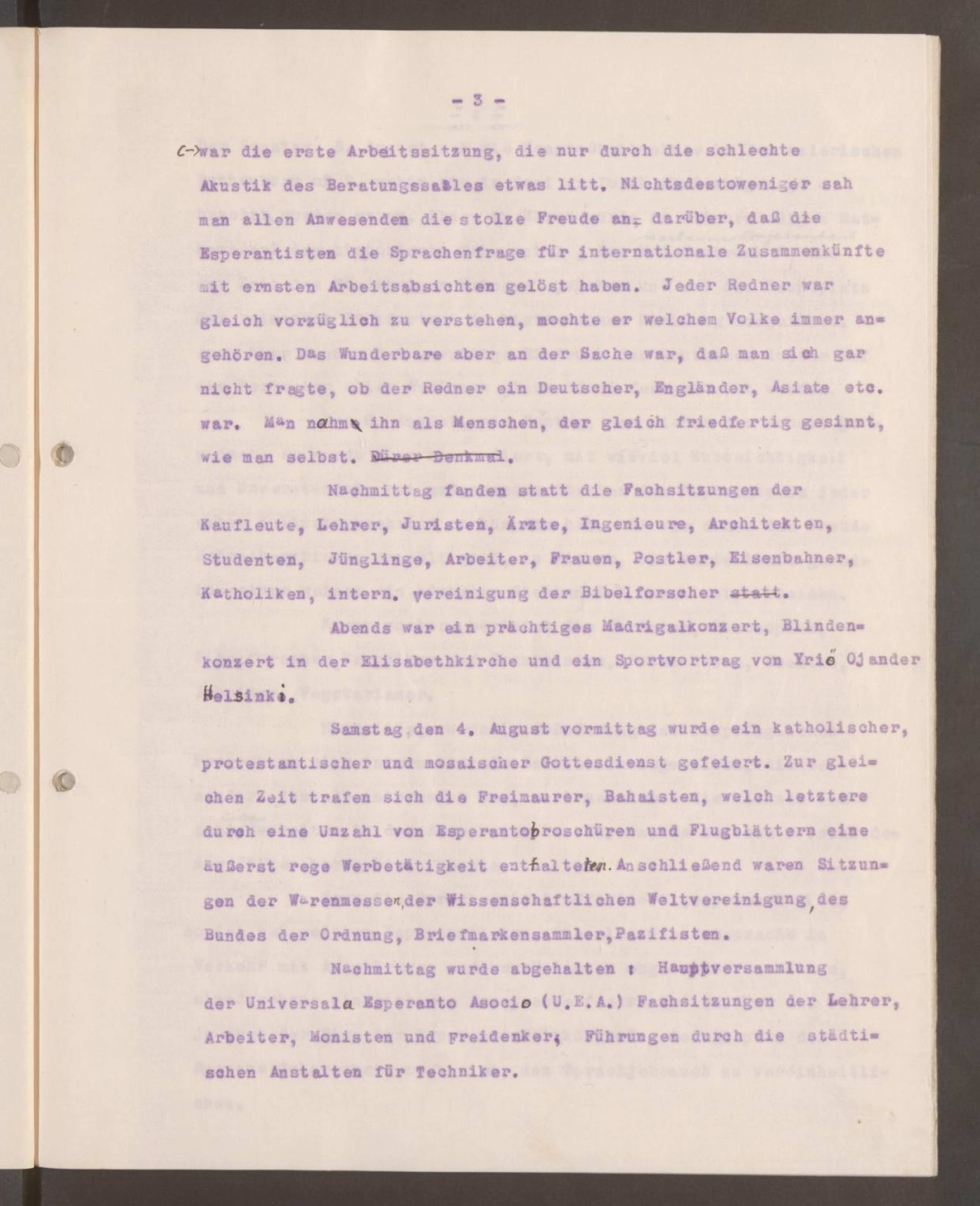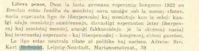 "Posttagmezo okazus : ĝenerala asembleo de Universala Esperanto Asocio (U.E.A.), profesiaj renkontiĝoj de instruistoj, laboristoj, monistoj kaj liberpensuloj, gvidataj vizitoj de la urbaj institutoj por teknikistoj."