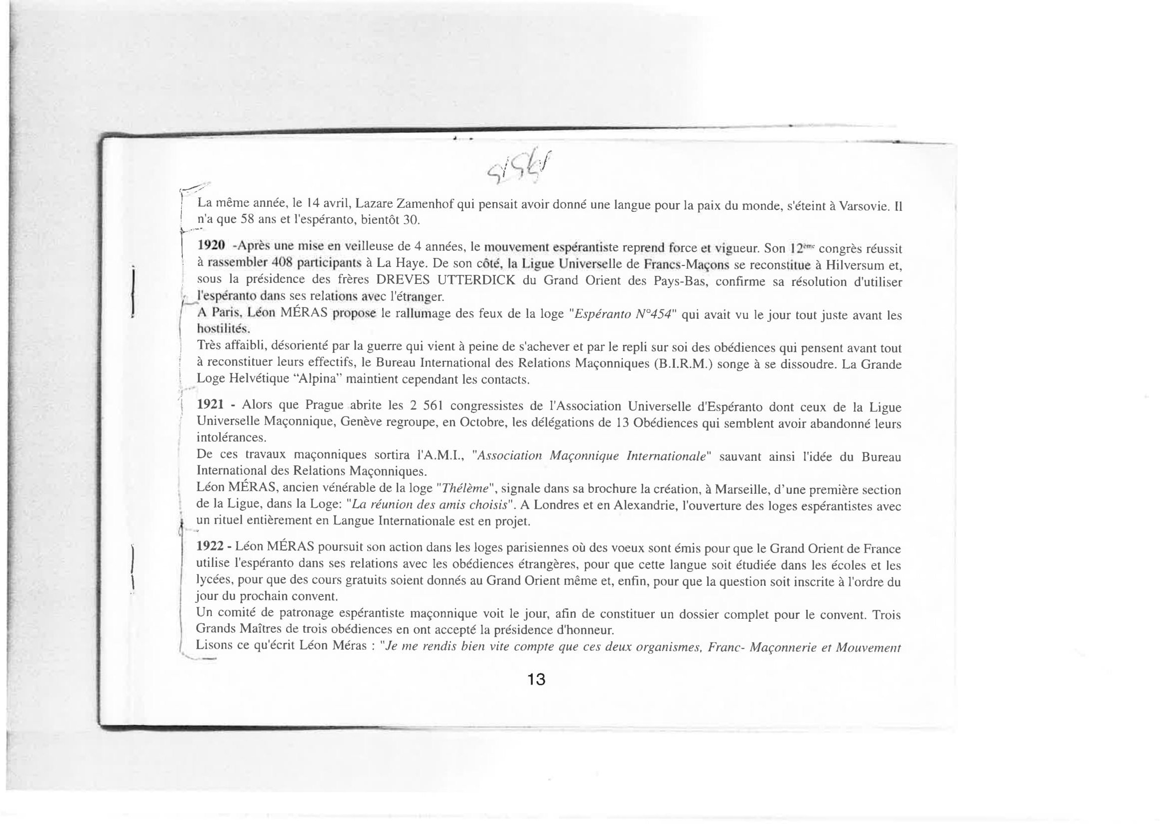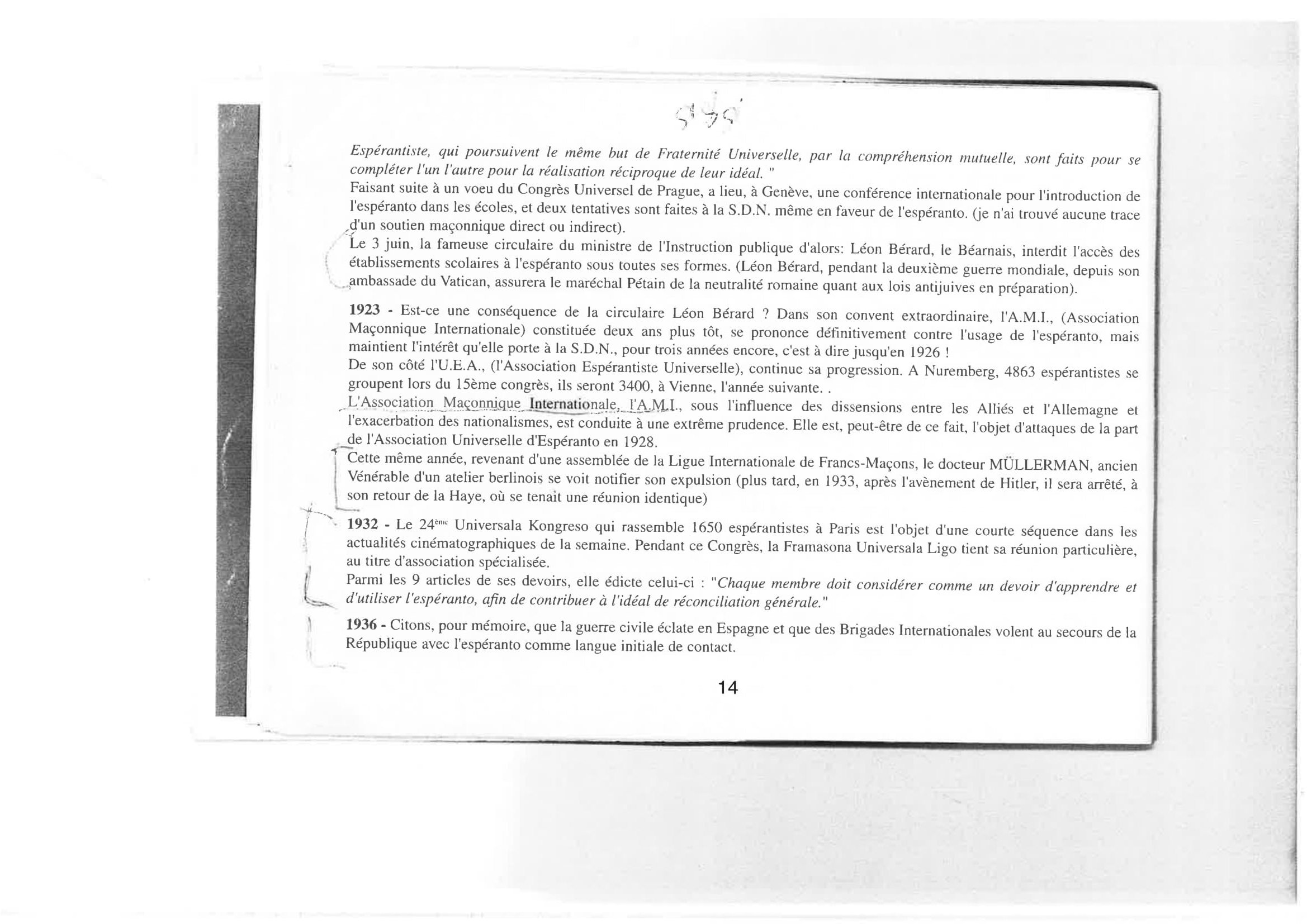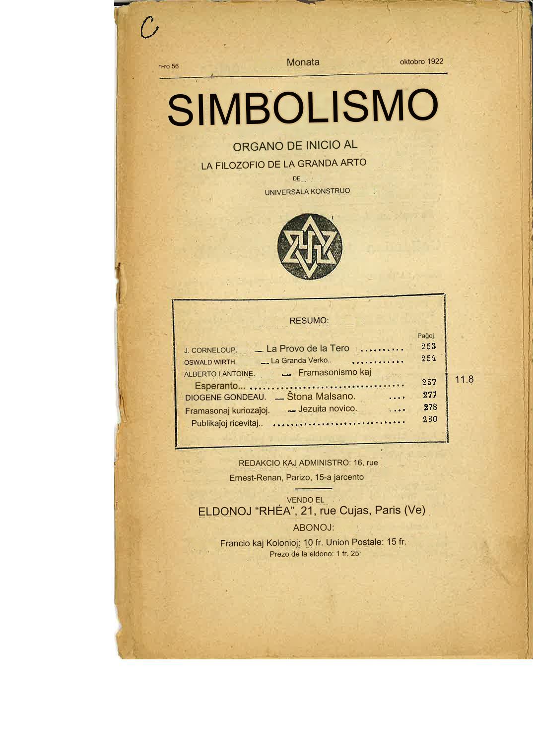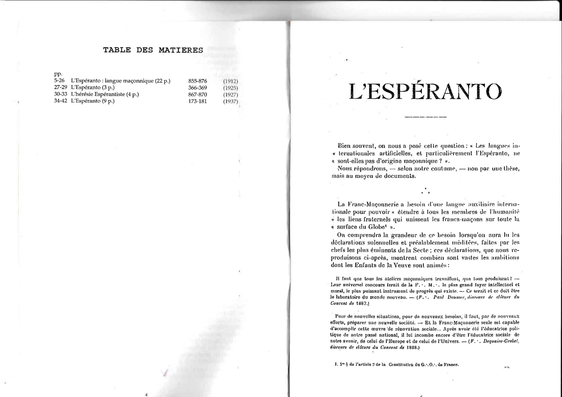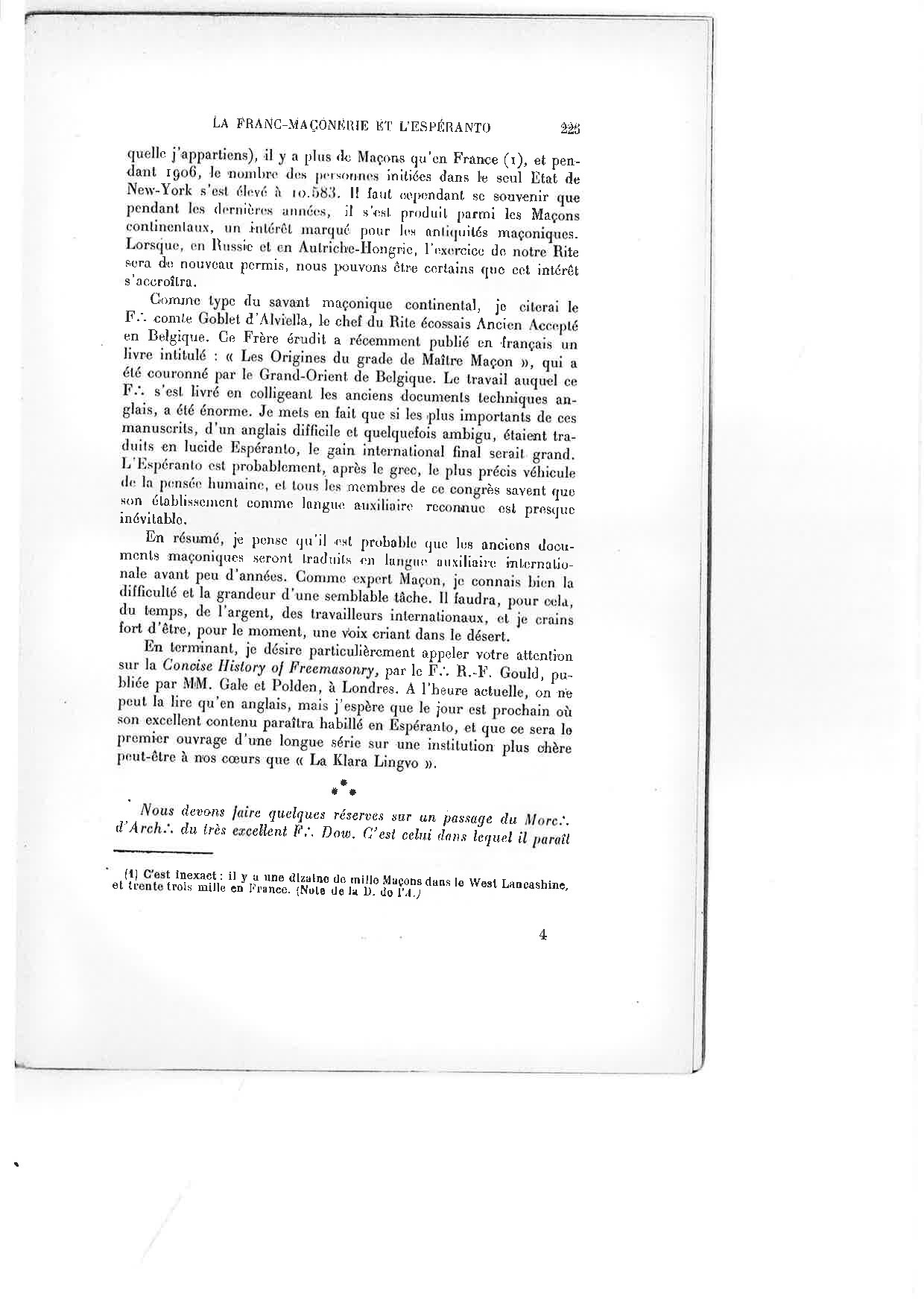 Internacia Revuo de sekretaj societoj : La Esperanto Framasona Lingvo ĉirkaŭ 1930 franclingve