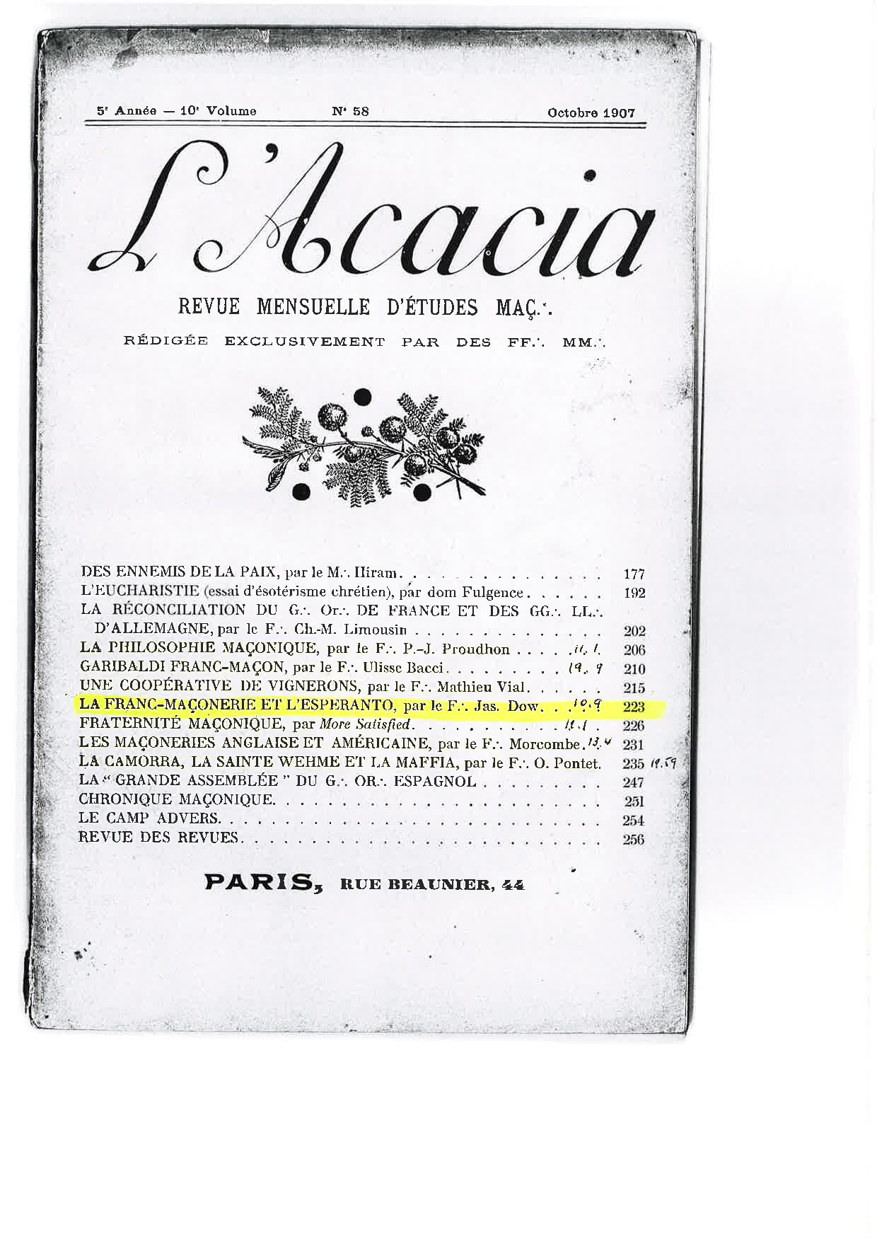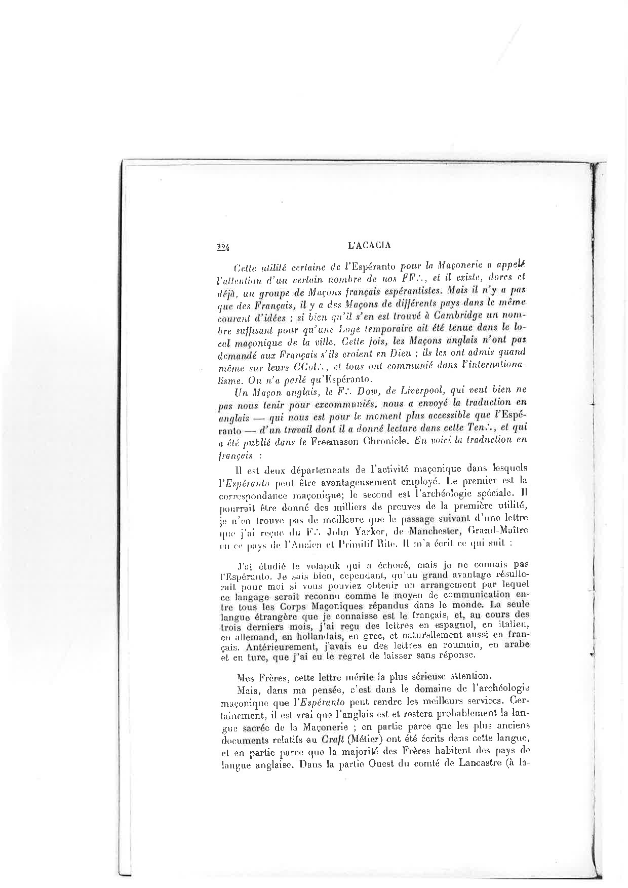 Tre rapide, pro utilismaj kialoj, tiu artefarita lingvo disvastiĝis inter komercistoj, kleruloj, vojaĝantoj ; sed ĝi allogas ankaŭ ĉiujn, kiuj mezuras ĝiajn moralajn kaj filozofiajn valorojn, kiuj estas malfermitaj al ĝiaj demokratiaj dimensioj - Esperanto estis moknomita "la latino de la malriĉuloj" de la rektoro Boirac -, internaciistoj kaj pacifistoj.jarcentaj, laboristaj militistoj, socialistoj, liberaj. pensuloj, membroj de la Ligo de Homaj Rajtoj* estas multnombraj por dediĉi sin al Esperanto kaj rekomendi ĝian praktikadon.movado ;en 1906 la pariza loĝio Les Vrais Experts adresis al la Konsilio de la Ordeno de la Granda Oriento* de Francio deziron rilatantan ; al la kreado de Esperanto-kurso.En 1913, ene de la Granda Logio de Francujo* kreas loghio, nomata Esperanto, laboranta en la lingvo de D-ro Zamenhof, i funkcias ankora hodiau.