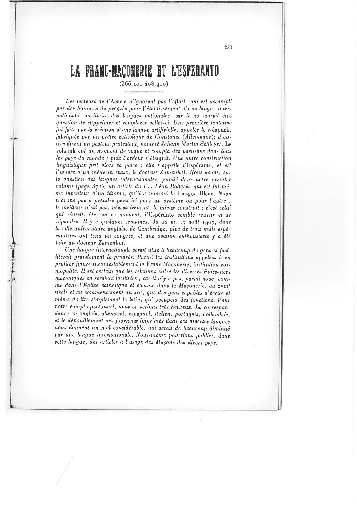 [23] Esperanto kaj framasonismo