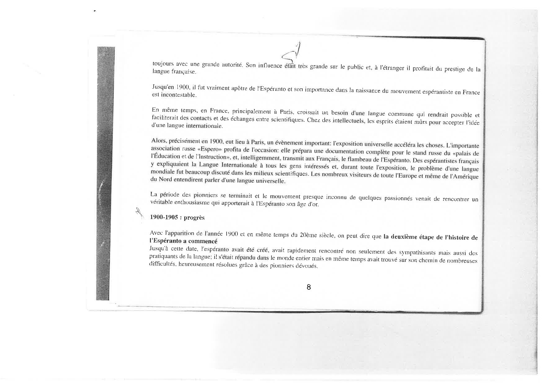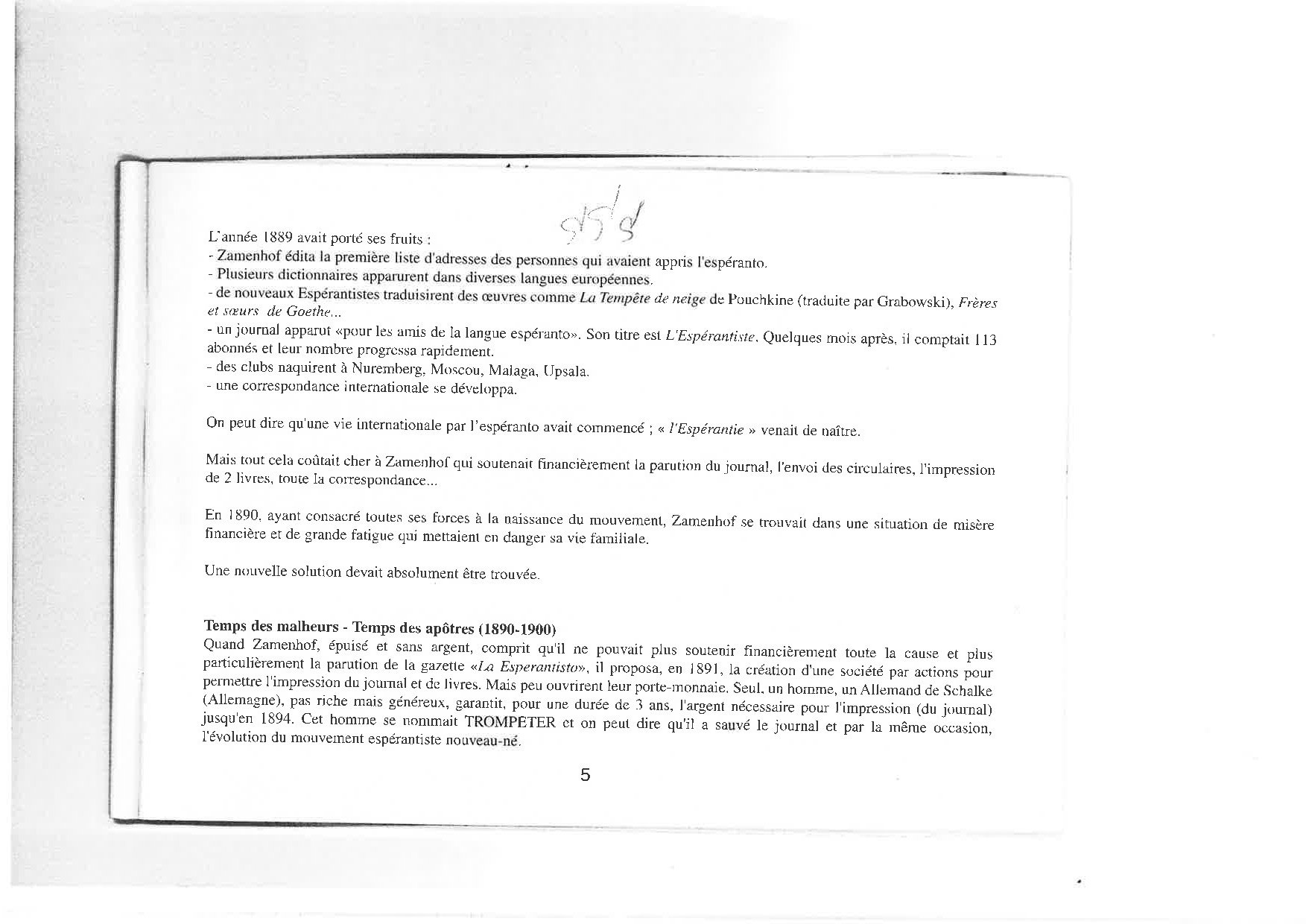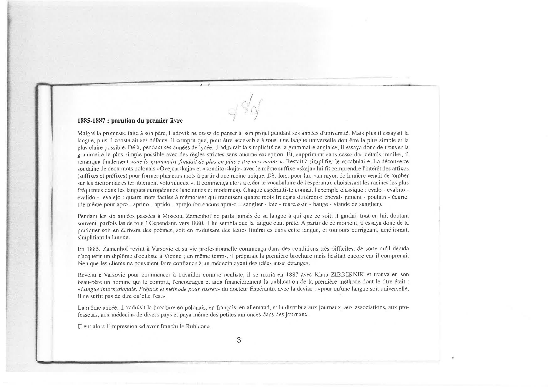 L’espéranto est une des nombreuses langues aŭxiliaires internationales ou universelles élaborées pour remédier aŭ difficultés de communication entre les hommes causées par la multiplicité d es langues. Il est élaboré en 1887 par Lazare-Louis Zamenhof (1859 1917), médecin juif polonais qui crée aussi une sorte de religion humanitariste, le hillélisme. L’espéranto l’emporte sur les autres langues aŭiliaires grâce à la simplicité de ses structures, à la facilité de son apprentissage, et à la souplesse de son fonctionnement. Il repose sur le respect de 16 règles qui ne souffrent aucune exception. Les mots sont formés à partir de radicaŭ latins et germaniques aŭquels s’ajoutent des préfixes et des suffixes ayant toujours la même signification ; ses conjugaisons ne comprennent aucune irrégularité, son écriture est phonétique, la prononciation homogène grâce à un accent tonique toujours placé sur l’avant-dernière syllabe.