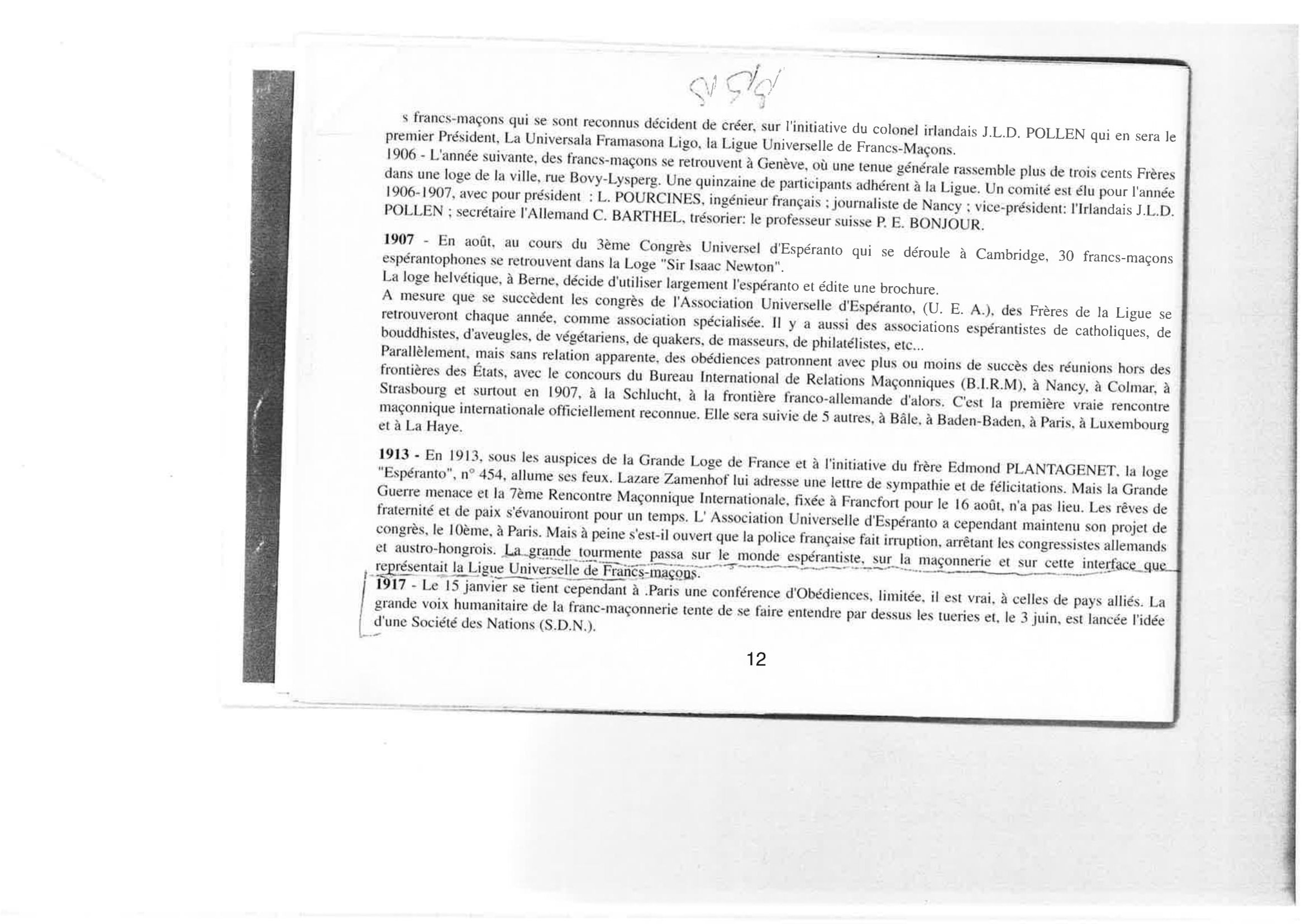 32 En tiu sama jaro, 1913, estis kreita ĉe la Granda loĝio portanta la nomon Esperanto