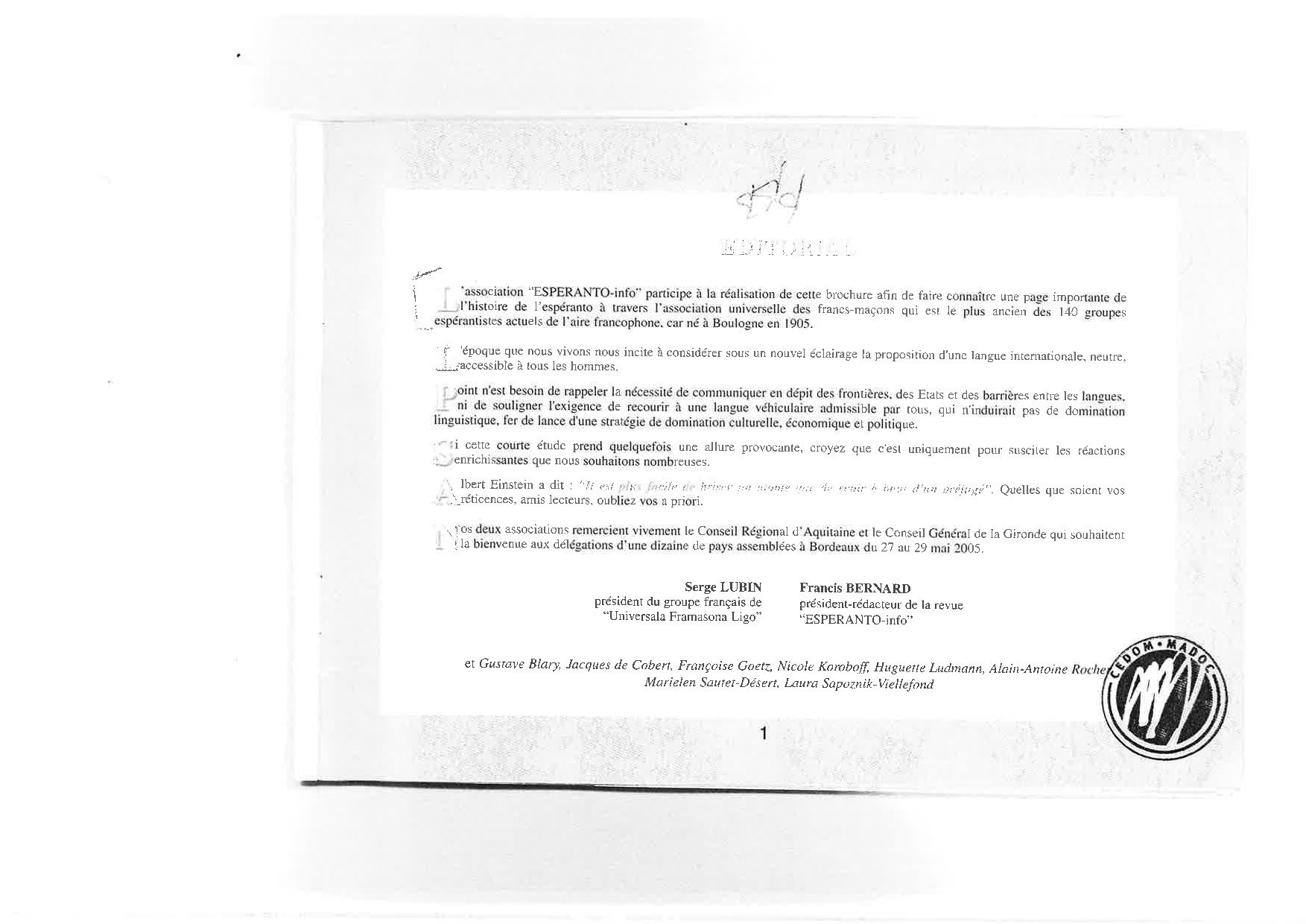 29 Post la kongreso de Boulogne-sur-Mer kreiĝis Esperanto Framasona : ĝi estas a
