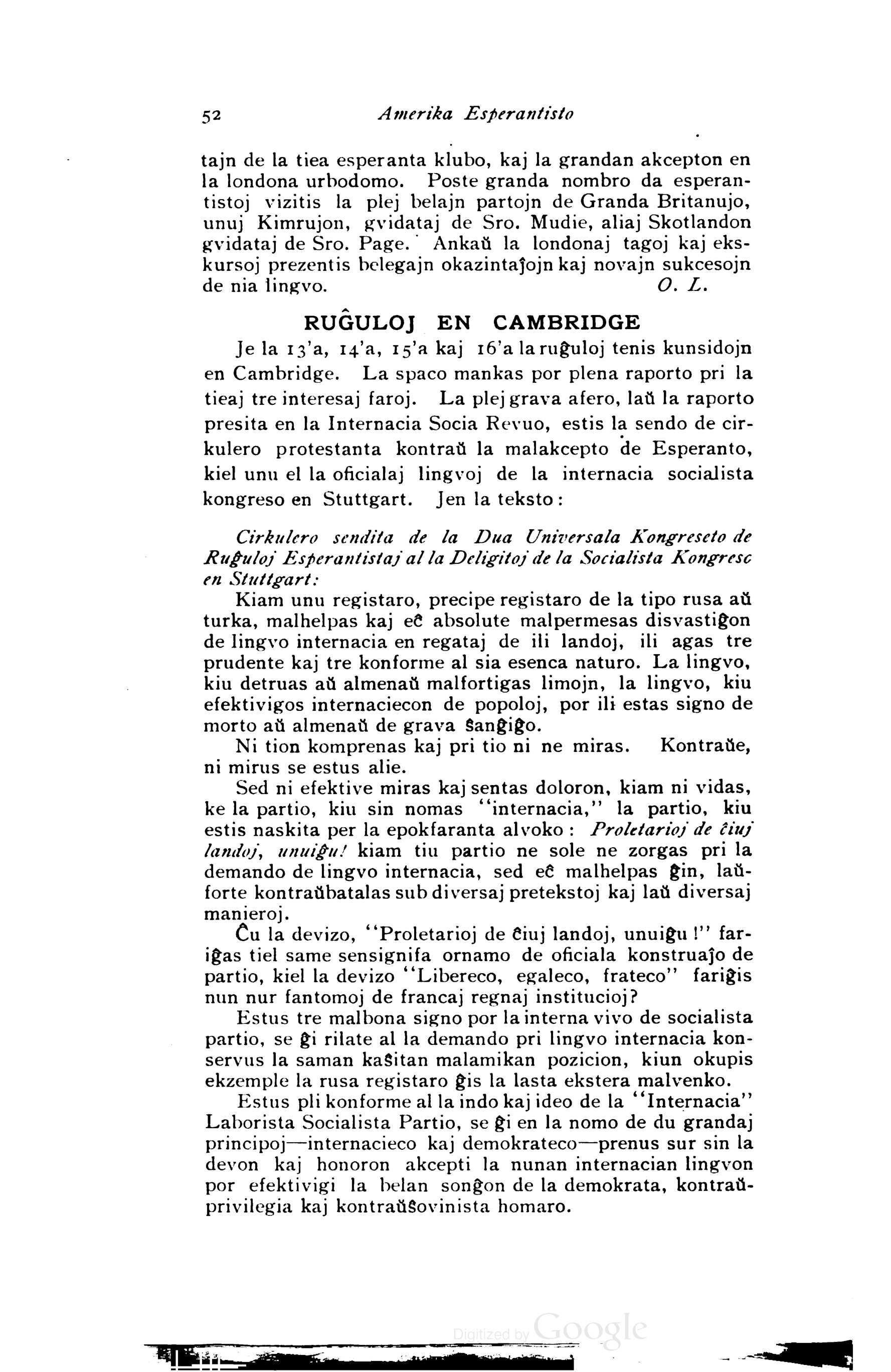 UK Kembriĝo 1907 Ruĝuloj Amerika Esperantisto okt