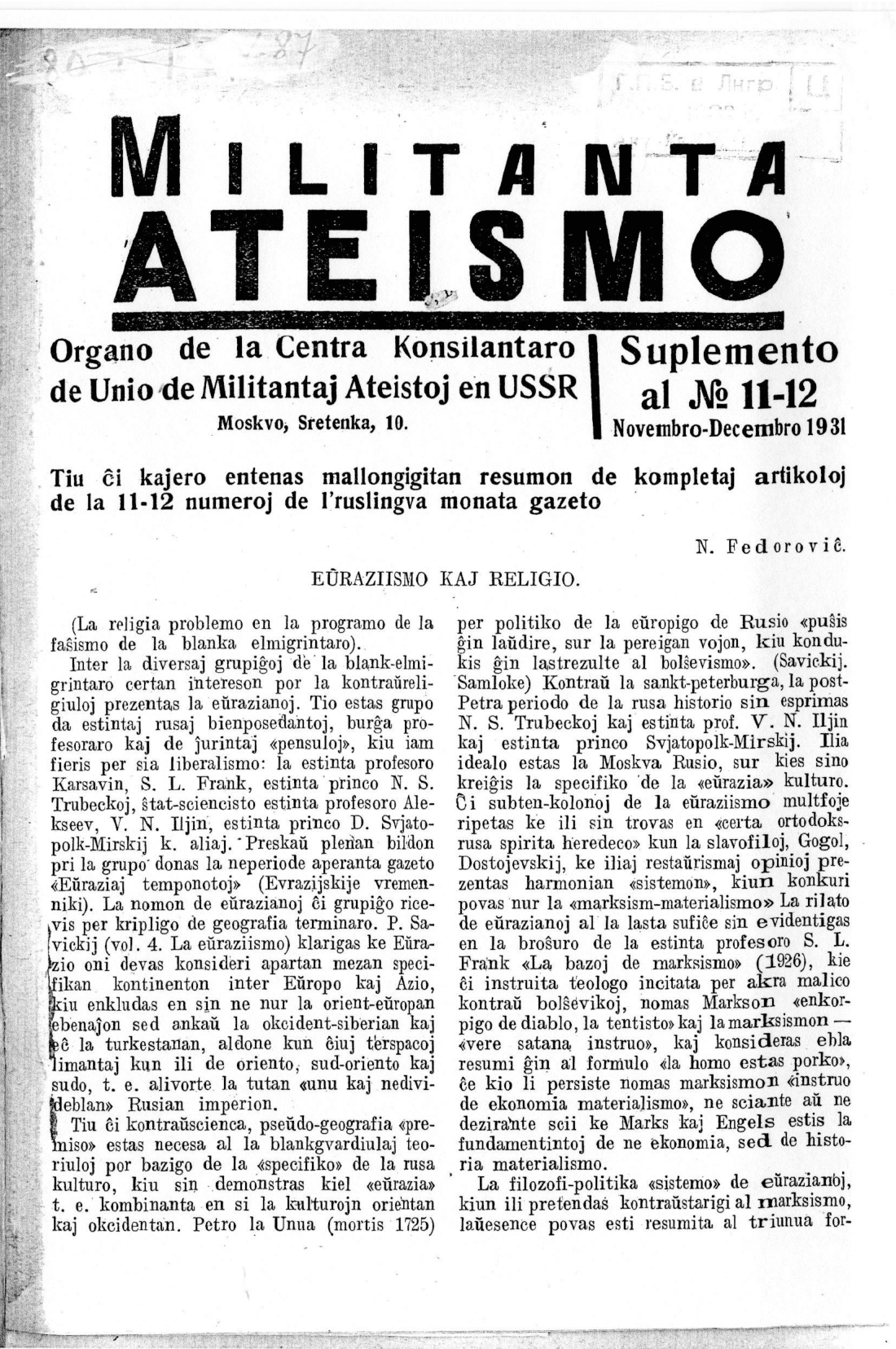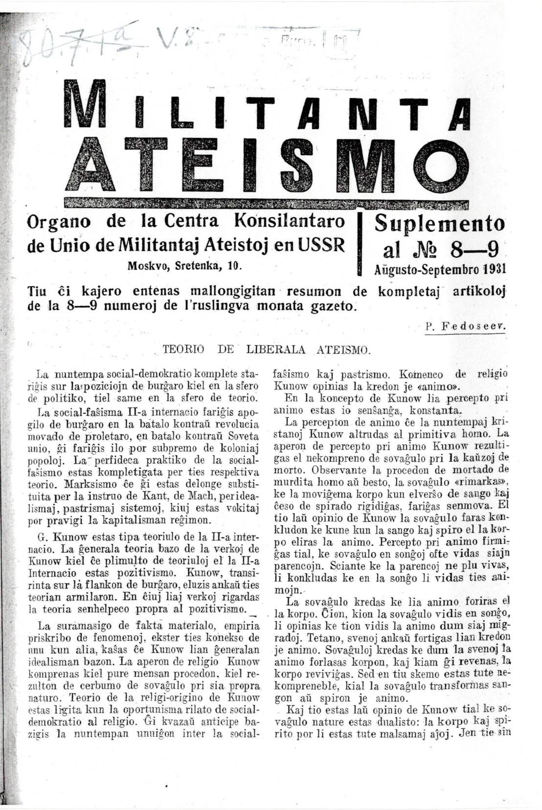 Organo de la Centra Konsilantaro de Unio de Militantaj Ateistoj en USSR