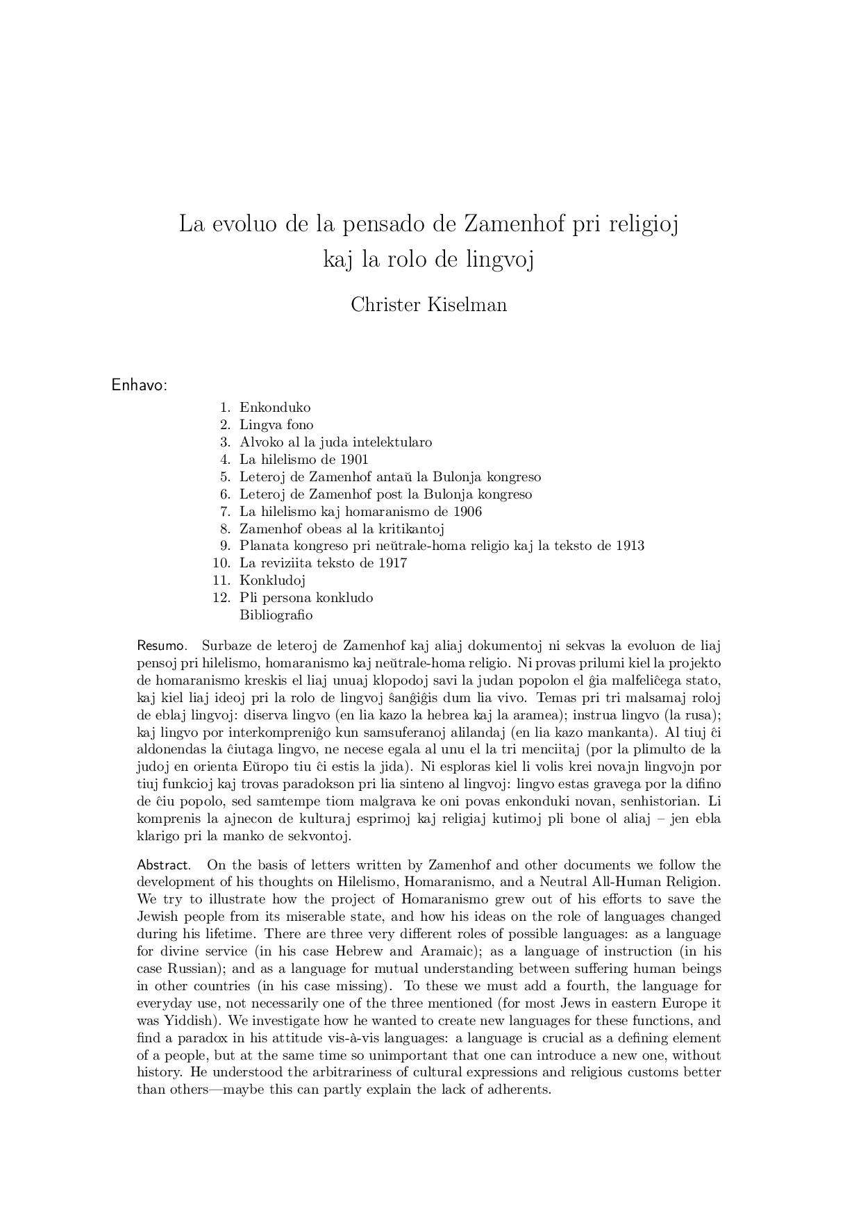 Christer Kiselman la evoluo de la pensado de Zamenhof pri religioj kaj la rolo de lingvoj