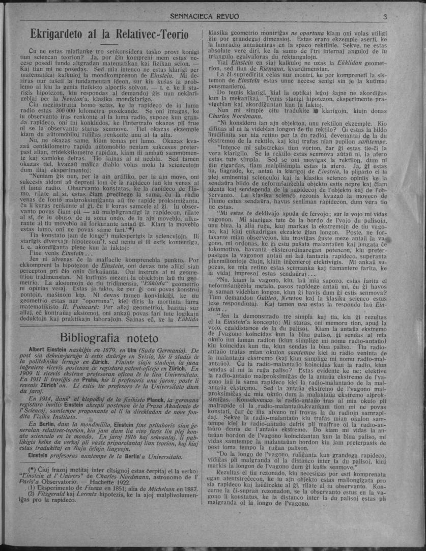 revoluciige malfermis novajn perspektivojn. Mi do ne intencas diskuti pri la teorio de relativeco, kiu
