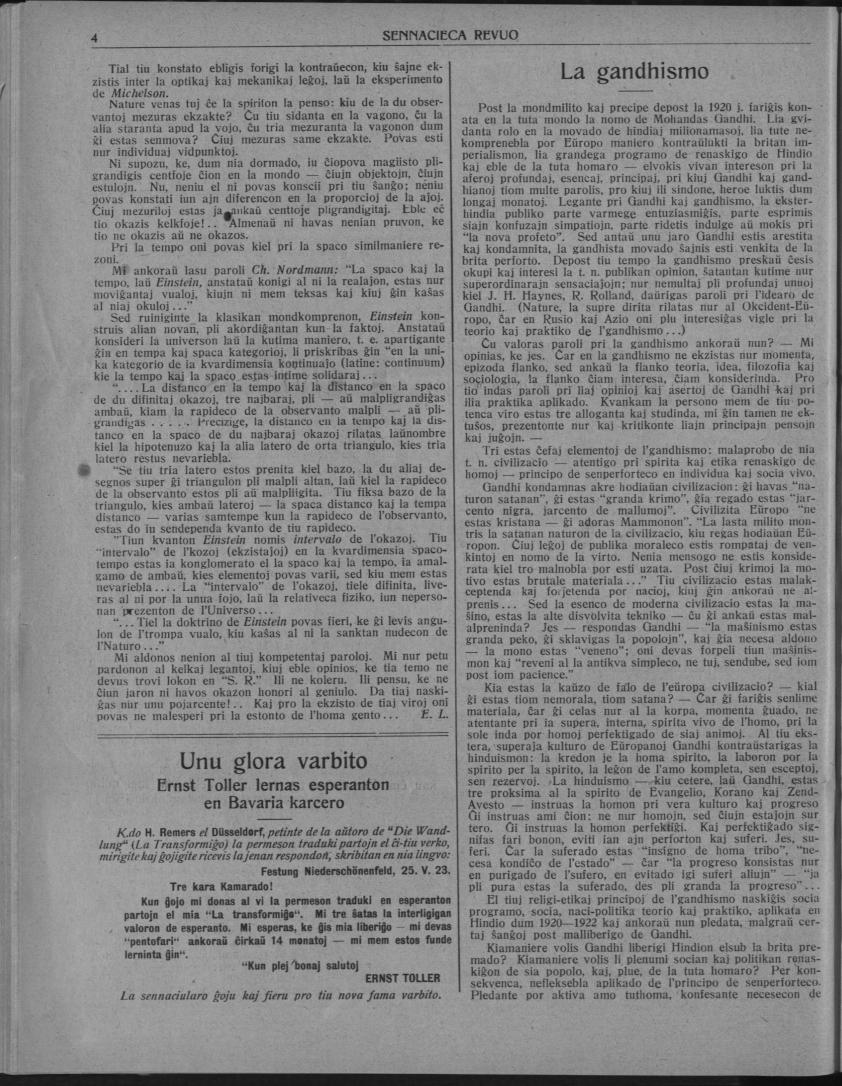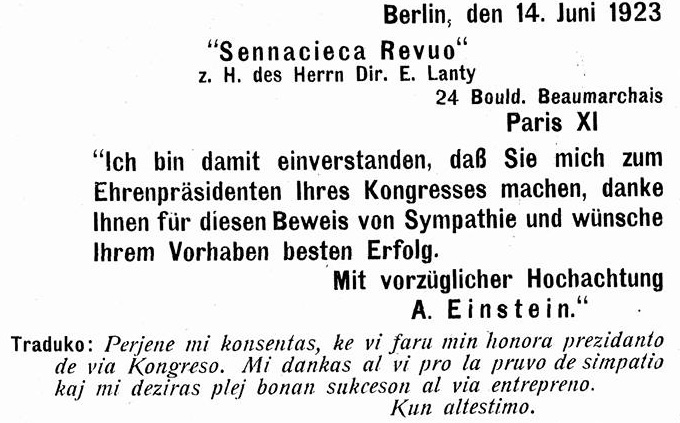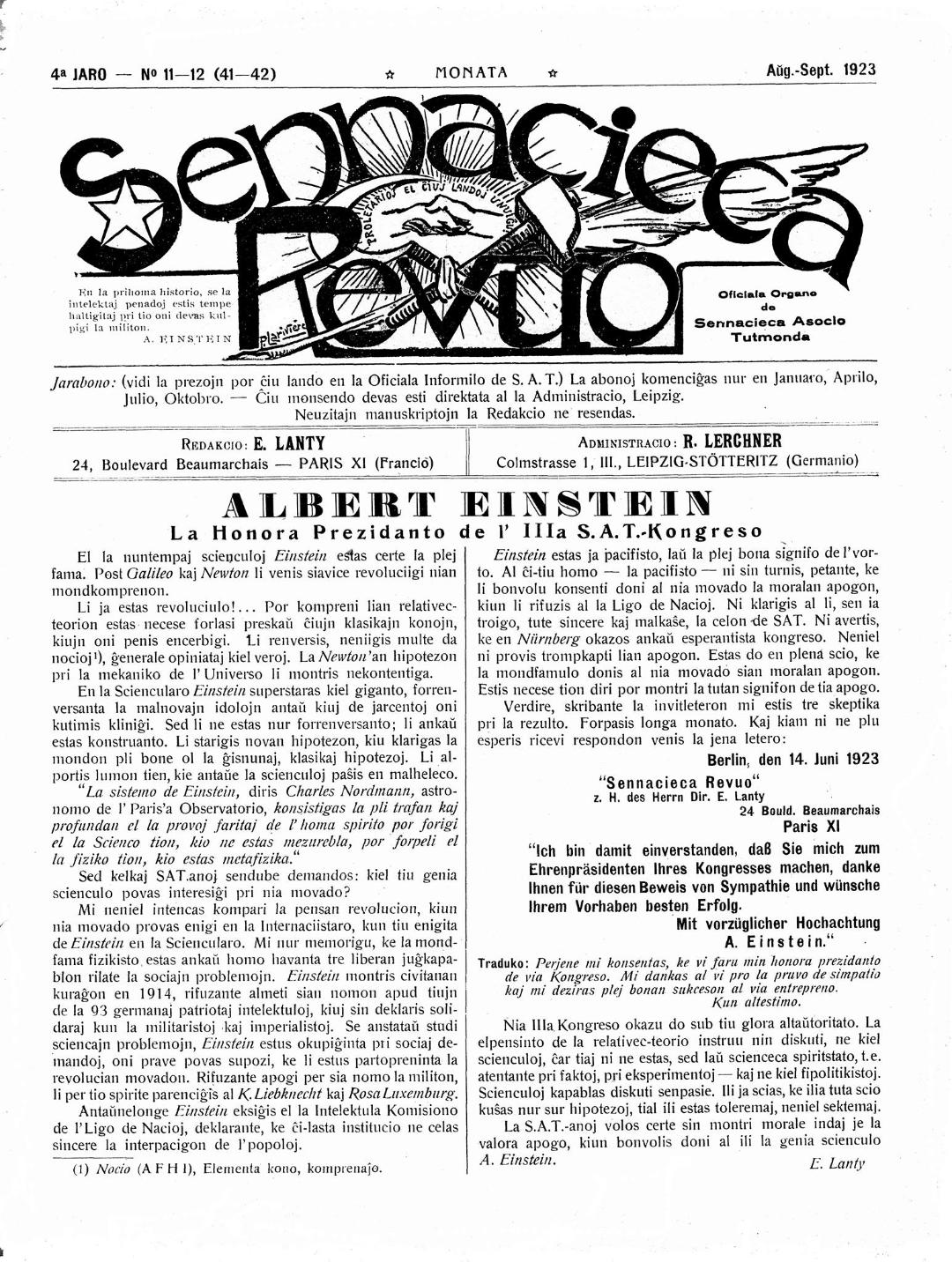 Mi turnas min al vi, pacifisto, kiu honoris la revuon “Clarté” per kelkaj rimarkoj pri “Scienco kaj