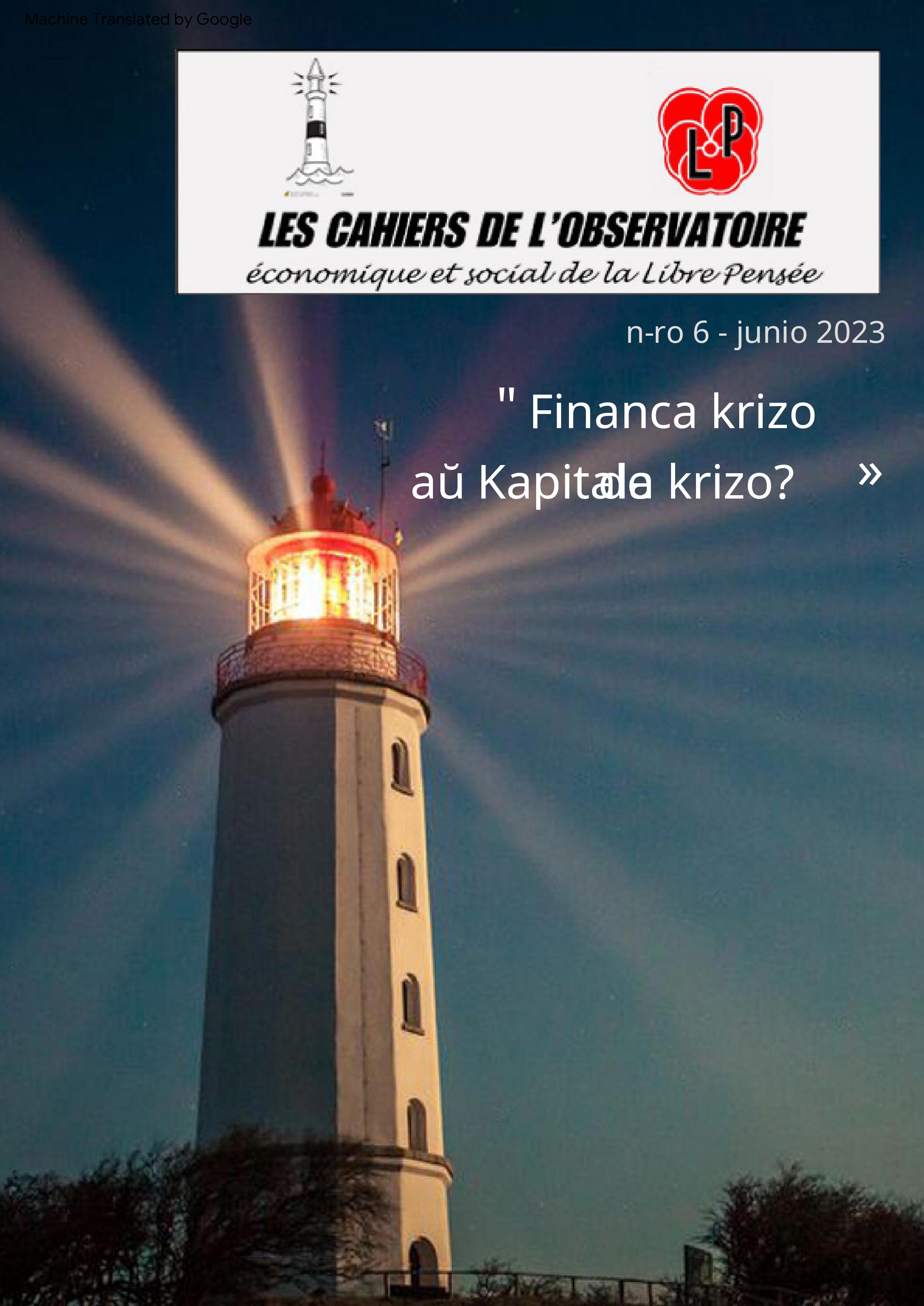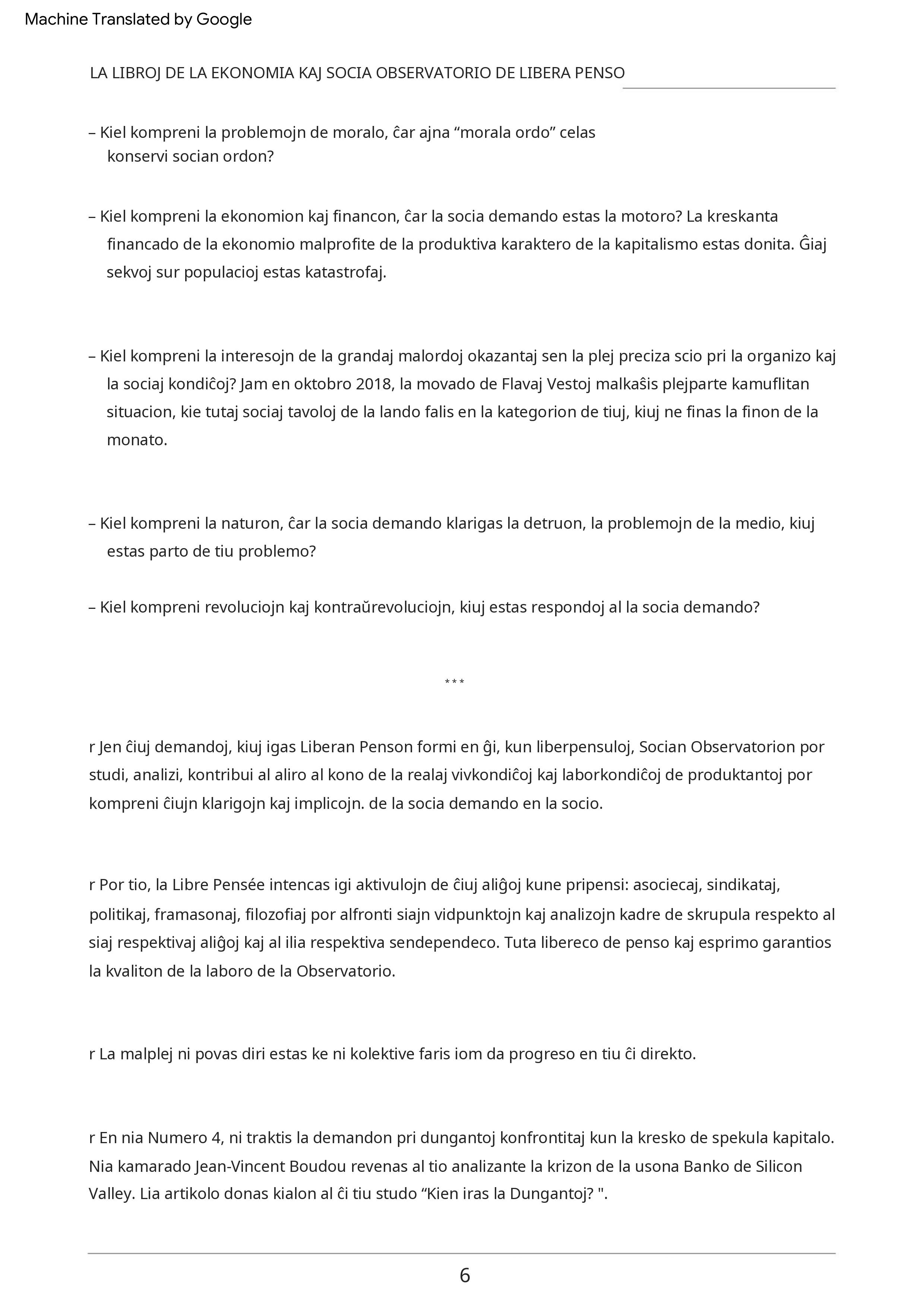 Kajero 6 LA LIBROJ DE LA EKONOMIA KAJ SOCIA OBSERVATORIO DE LIBERA PENSO