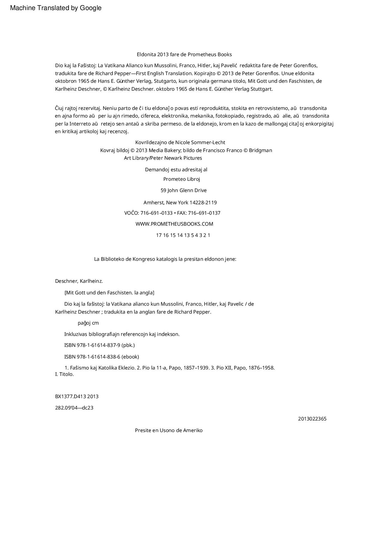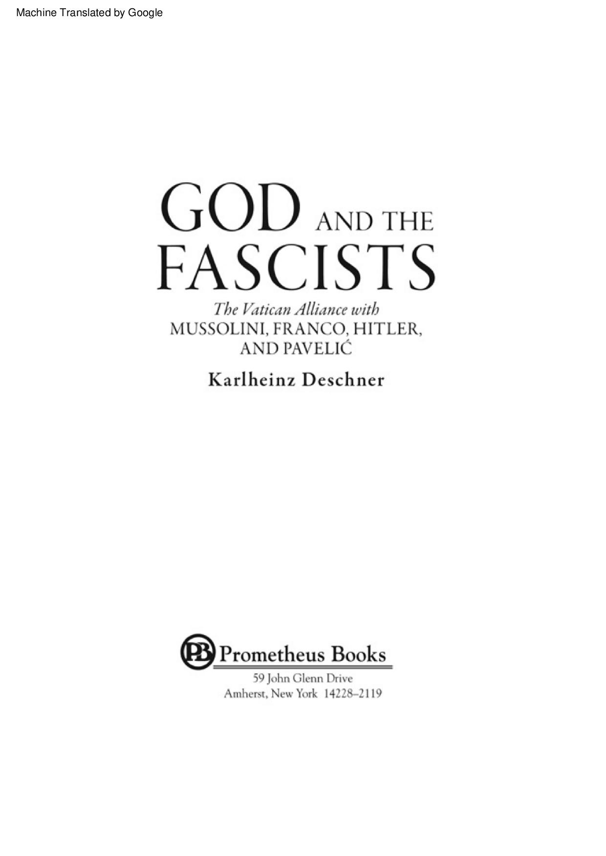 Karlheinz Deschner - Gott und die Faschisten_ Das Bündnis des Vatikans mit Mussolini, Franco, Hitler und Pavelic Karlheinz Deschner - Dio kaj la Faŝistoj_ La Vatikana Alianco kun Mussolini, Franco, Hitler, kaj Pavelic
