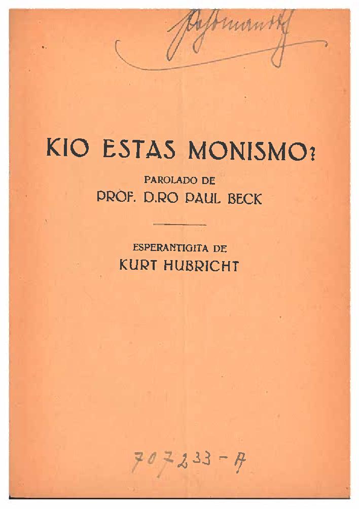 Kio estas monismo ? Kurt Hubricht kaj aliaj libroj