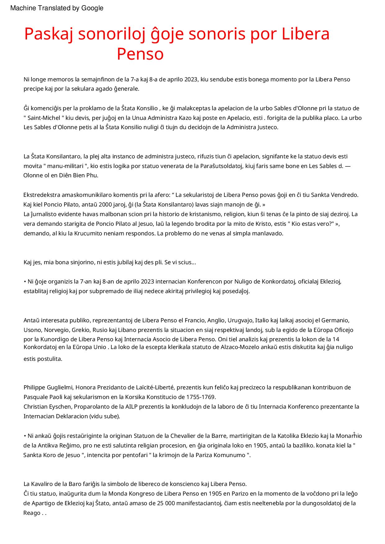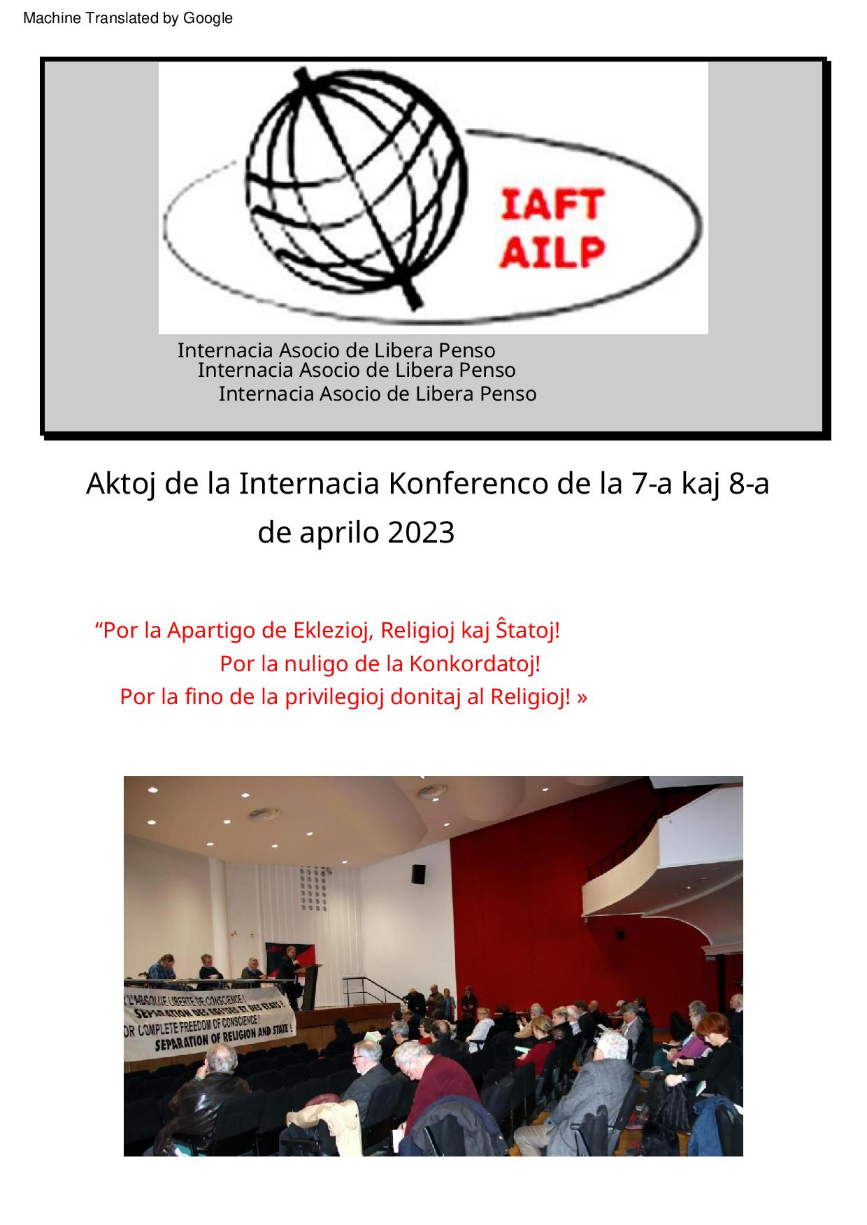 Aktoj de la Internacia Konferenco de la 7-a kaj 8-a de aprilo 2023 en Parizo (Francio) por la forigo de la Konkordatoj kaj la fino de la privilegioj de la Eklezioj