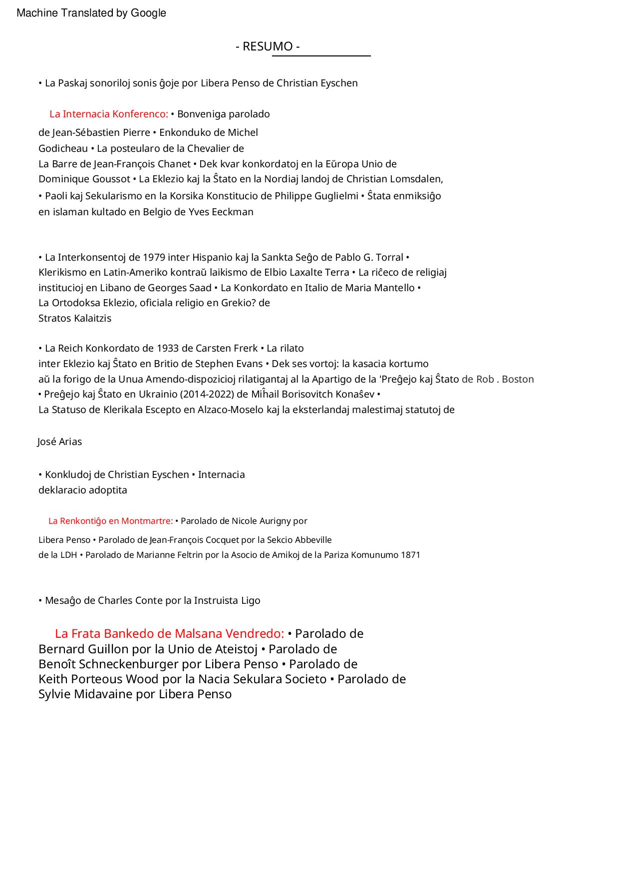 Aktoj de la Internacia Konferenco de la 7-a kaj 8-a de aprilo 2023 en Parizo (Francio) por la forigo de la Konkordatoj kaj la fino de la privilegioj de la Eklezioj.