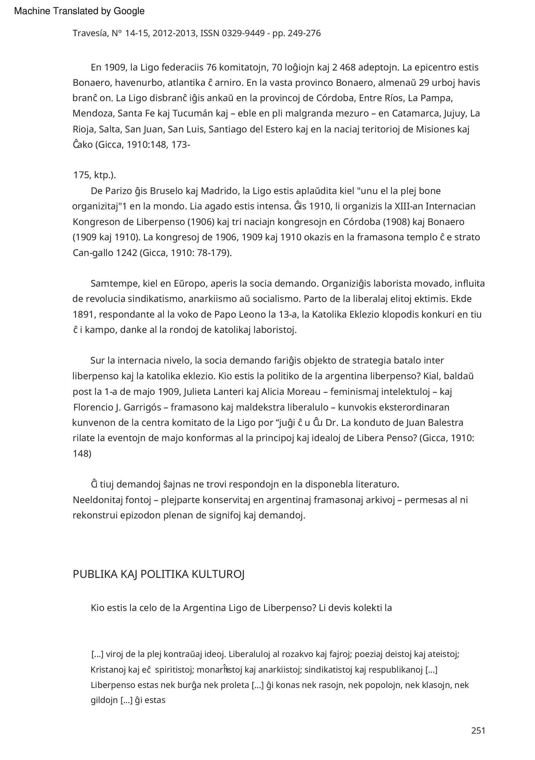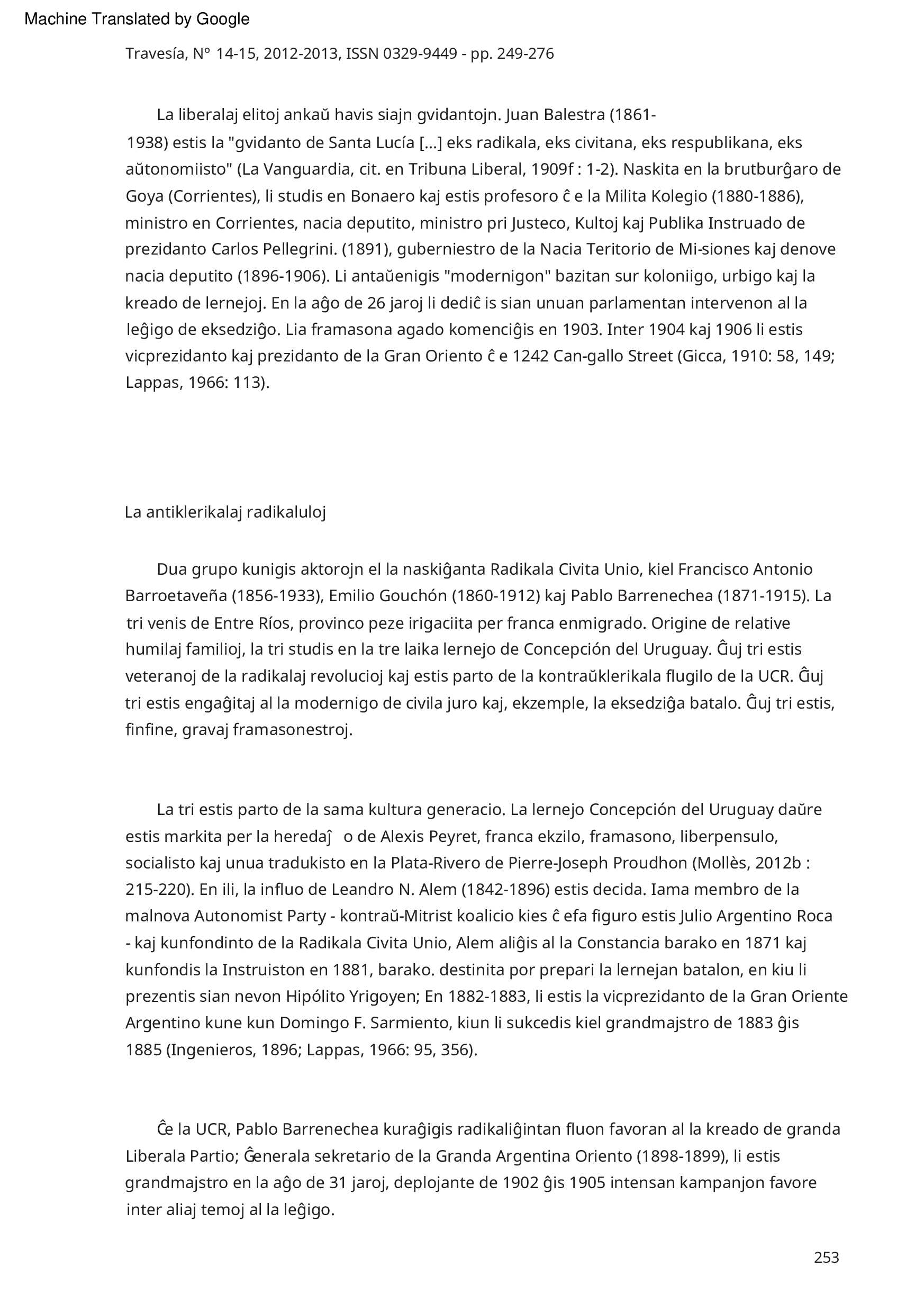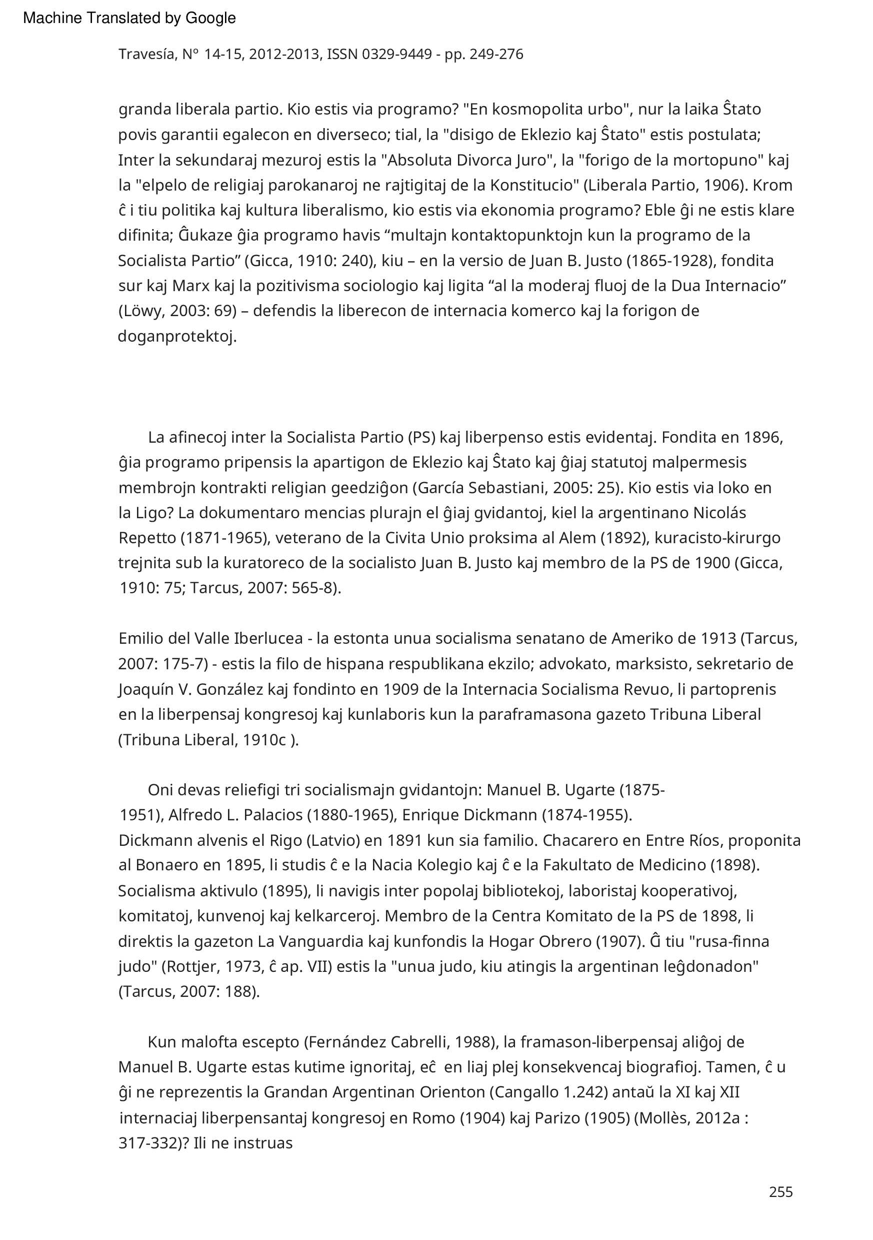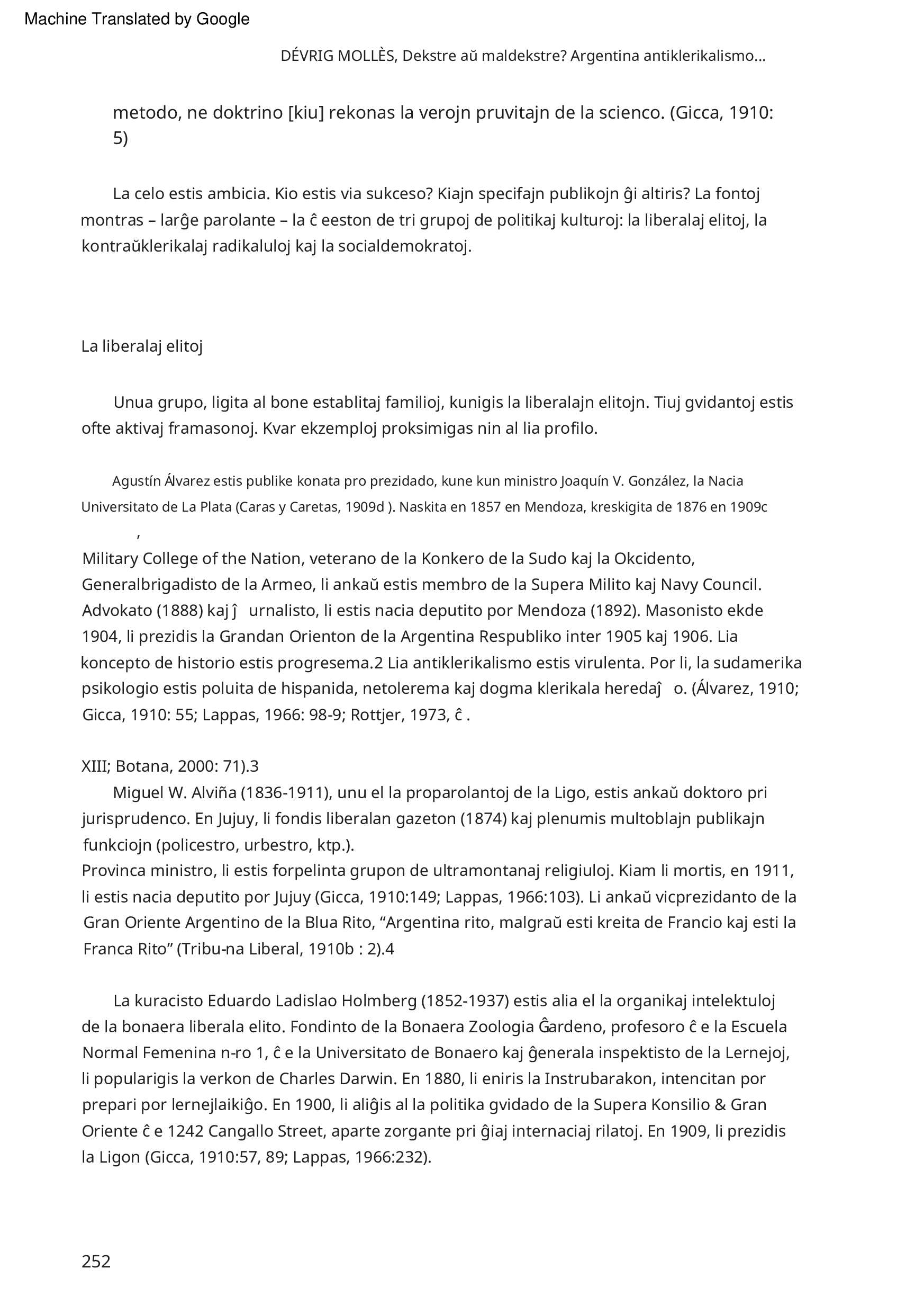 Dekstre aŭ maldekstre ? Argentina antiklerikalismo fronte al la socia demando (1904-1910) Dévrig Molles