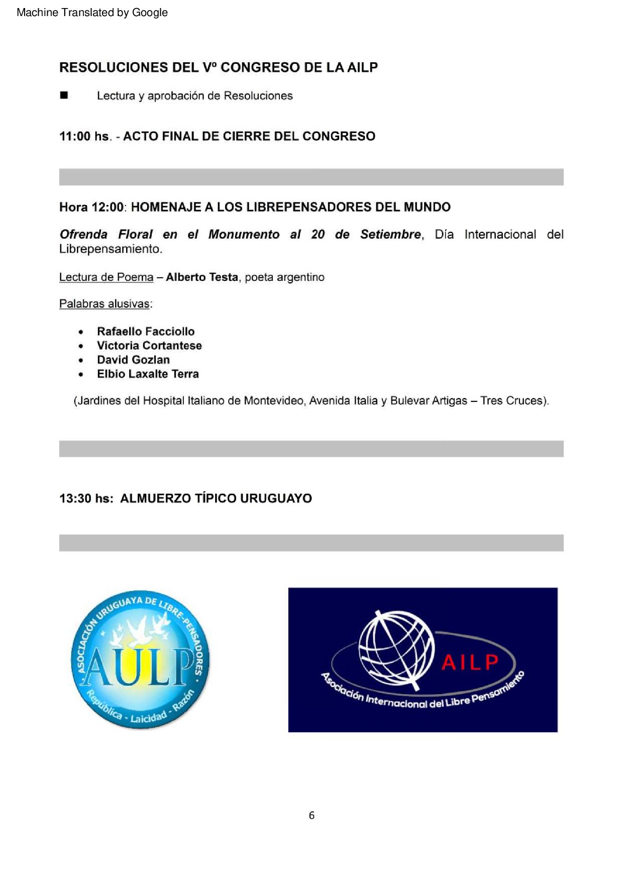 Kvina kongreso Internacia Asocio de Libera Penso en Montevideo